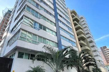Living amplo com dois ambientes, com lareira e sacada integrada com vista panorâmica para o mar. Prontinho para morar, mobiliado e com 121m² privativos.