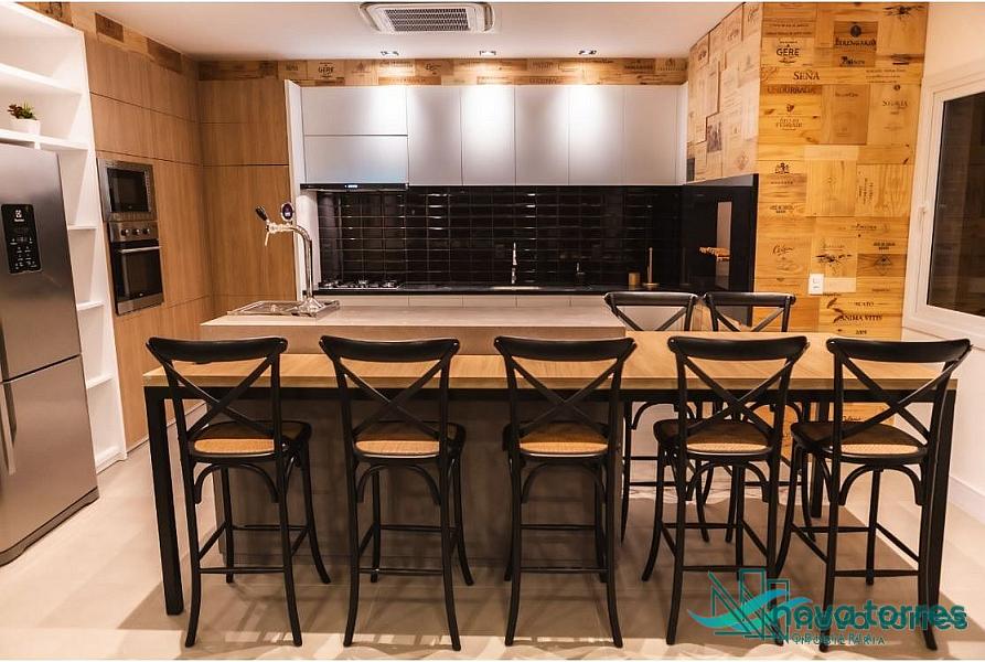 O amplo living, dividido em dois ambientes, proporciona um espaço acolhedor e sofisticado para receber convidados ou relaxar em família. A cozinha e a área de serviço são totalmente equipadas, garantindo praticidade no dia a dia.