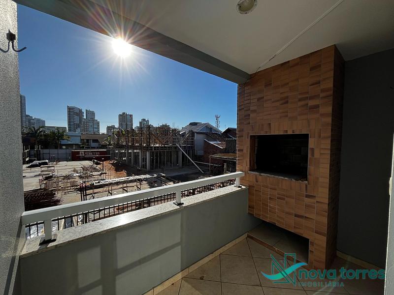 Possui dois dormitórios, sendo uma suíte, banheiro social, cozinha separada, área de serviço, e sacada com churrasqueira — ideal para aproveitar o clima litorâneo.