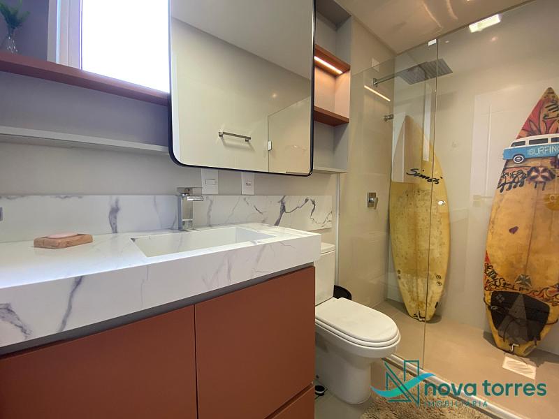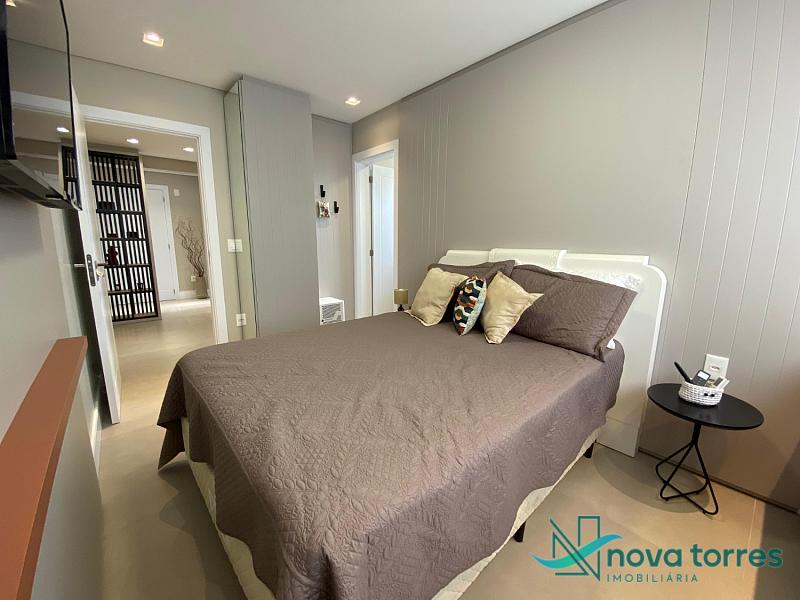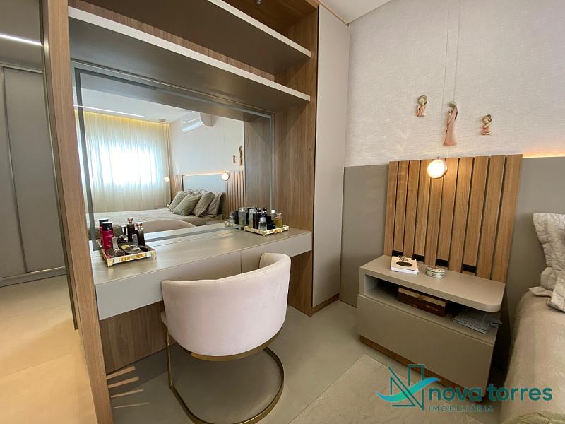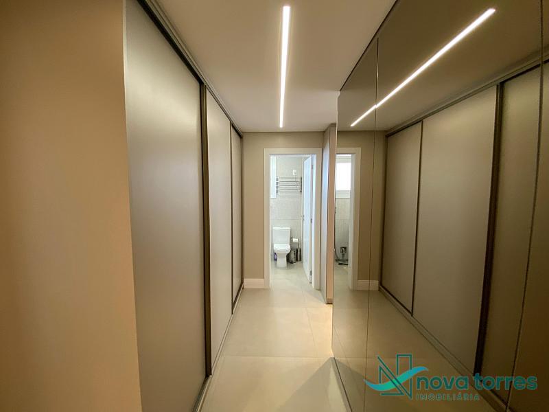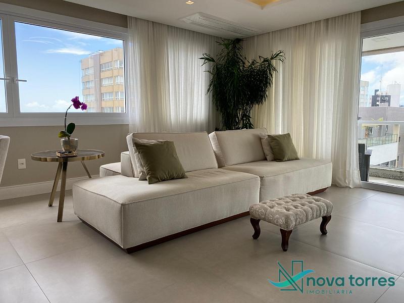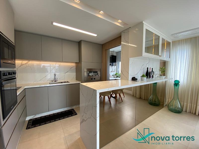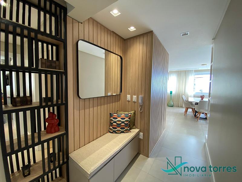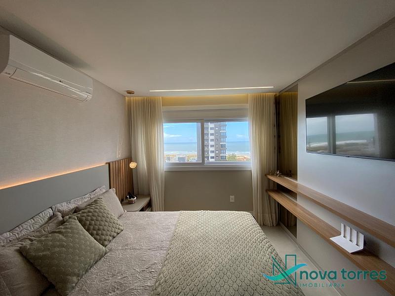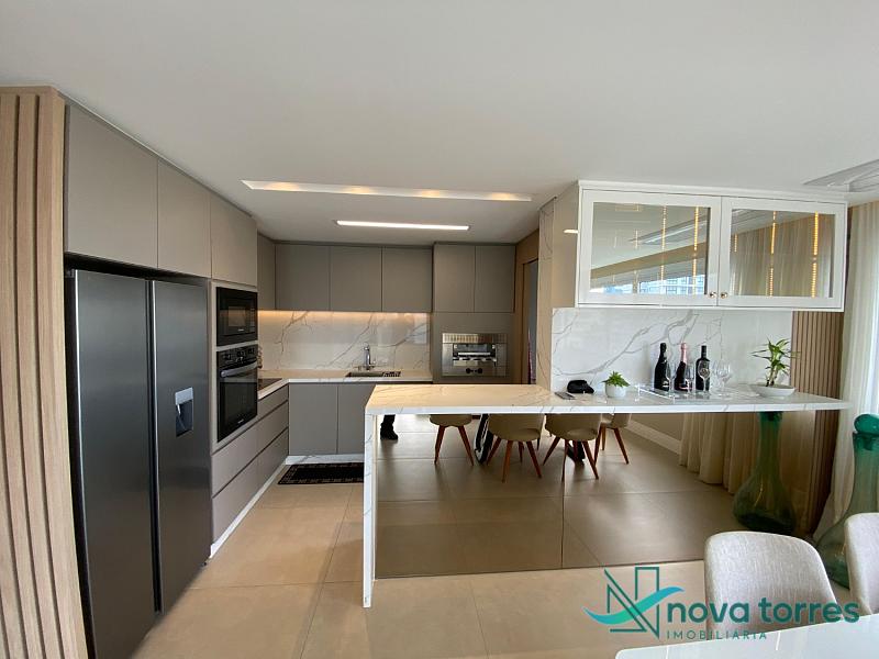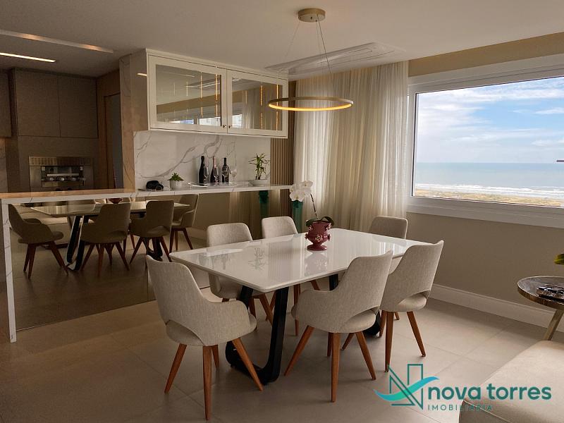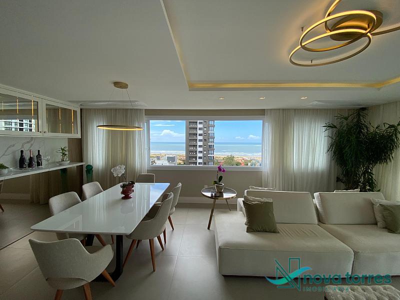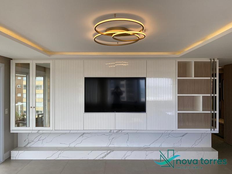 Localizado em um andar alto no prestigiado bairro Predial, em Torres/RS, este apartamento encanta com sua vista deslumbrante para a praia. Com um projeto de interiores contemporâneo em tons neutros, destaca-se pela integração dos ambientes sociais e pelos móveis sob medida em MDF, com acabamentos sofisticados em laca, detalhes em metalon, espelho reflecta bronze e quartzo calacatta. A iluminação, cuidadosamente projetada, cria uma atmosfera acolhedora e elegante, valorizada por embutidos e pendentes que realçam cada detalhe.