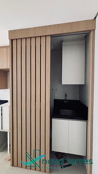 Apto com 01 dormitório, com demi suíte, sala de estar e jantar integradas, cozinha americana, área de serviço, churrasqueria.