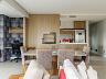 Amplo living integrado, com esquadrias piso-teto que valorizam a luminosidade natural e ampliam a sensação de espaço.