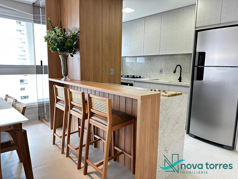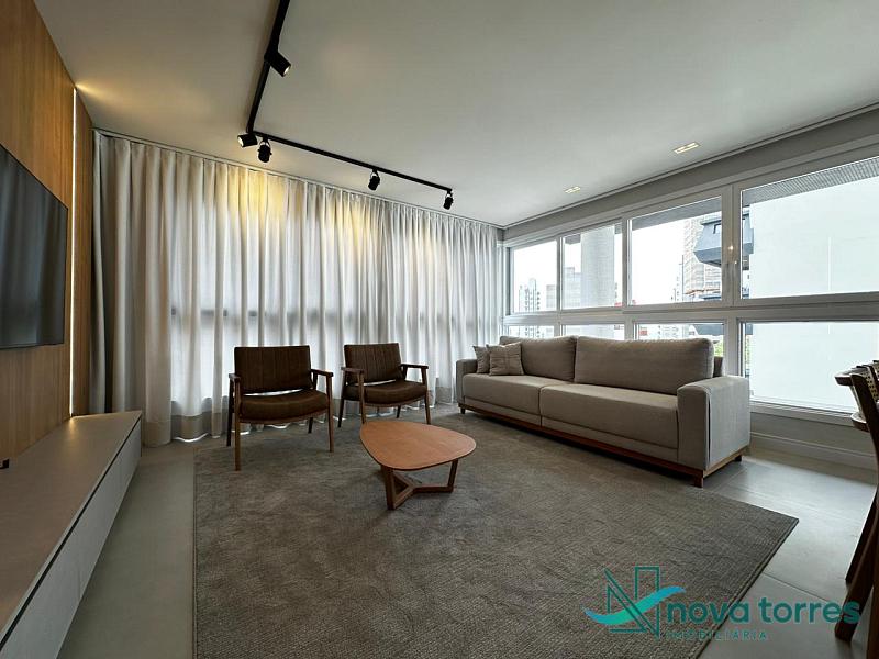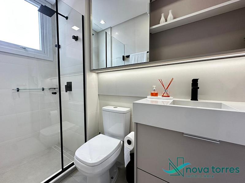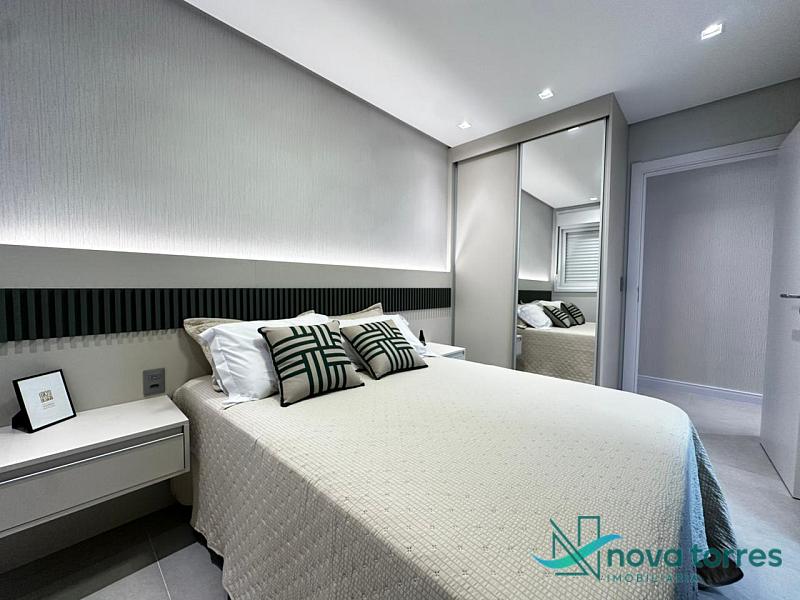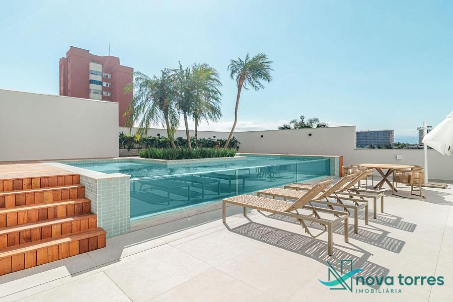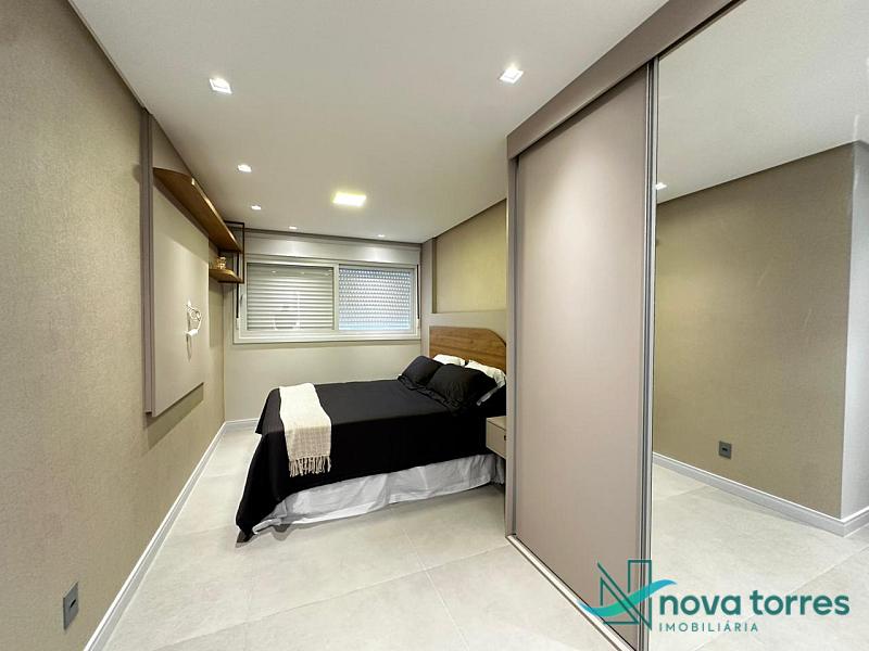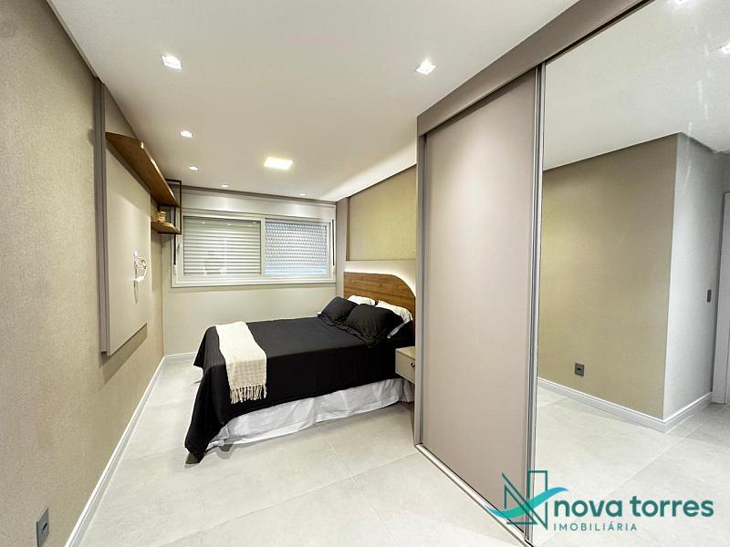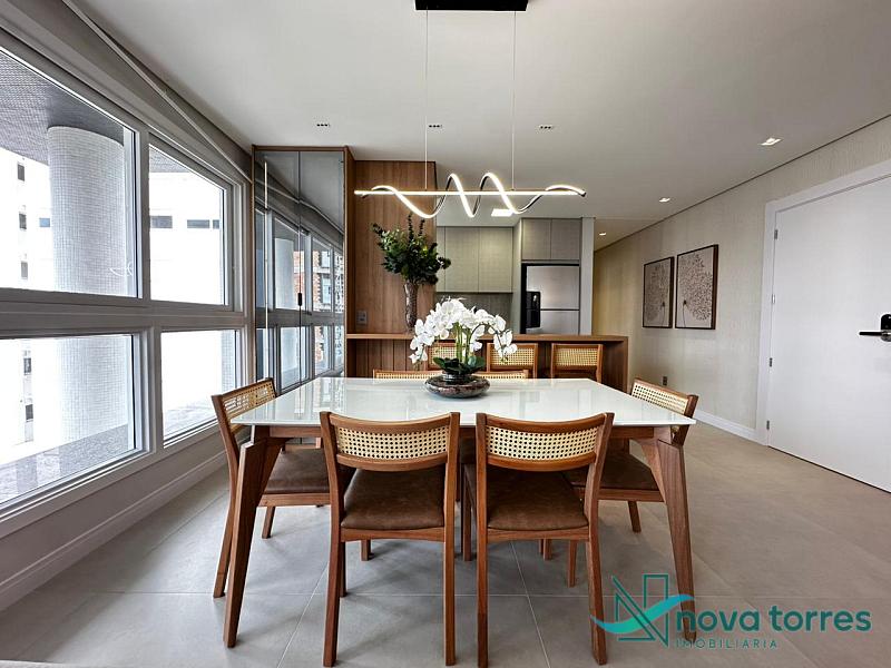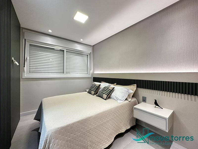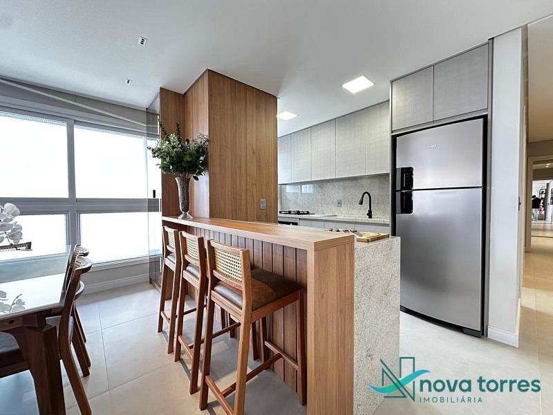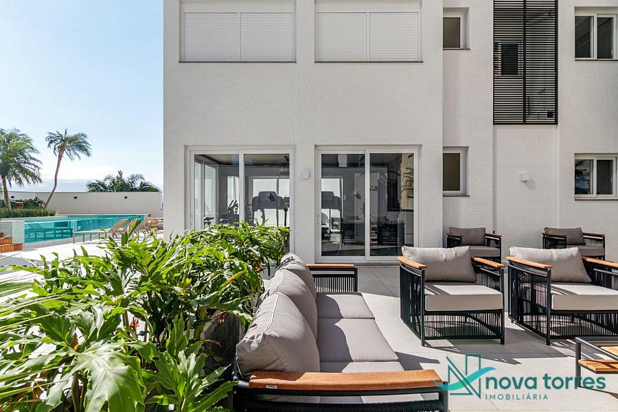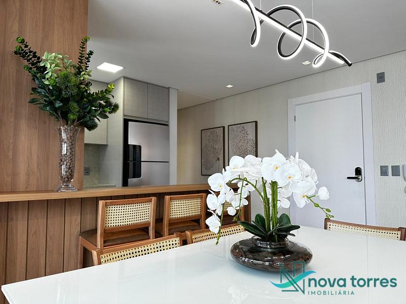 Apartamento no Edifício Ibiza, em Torres/RS, com 93 m² de área total. São dois dormitórios, ambos suítes, living amplo com dois ambientes integrados, sala de jantar e cozinha americana. O projeto de interiores privilegia a luz natural e o conforto visual, com grandes aberturas envidraçadas e orientação leste-norte, garantindo ótima iluminação ao longo do dia. A área social conta com acabamentos em gesso, piso porcelanato e mobiliário planejado em tons neutros, que reforçam a sensação de amplitude e elegância. O living é espaçoso e funcional, integrado à sala de jantar e à cozinha, que possui bancada em granito e marcenaria sob medida. O ambiente é totalmente equipado e harmoniza materiais em madeira, fibras e iluminação moderna. As suítes mantêm o mesmo padrão refinado, com armários embutidos e banheiros bem iluminados. O imóvel está localizado em andar alto, com vista para o mar e ventilação cruzada, oferecendo conforto térmico e privacidade. Conta ainda com churrasqueira, área de serviço, internet Wi-Fi e uma vaga de garagem. O Edifício Ibiza é um empreendimento de padrão elevado, recém-entregue, situado em região valorizada de Torres, próximo à praia, ao rio Mampituba e à orla gastronômica, reunindo localização privilegiada, arquitetura contemporânea e excelente infraestrutura condominial.