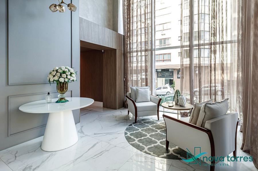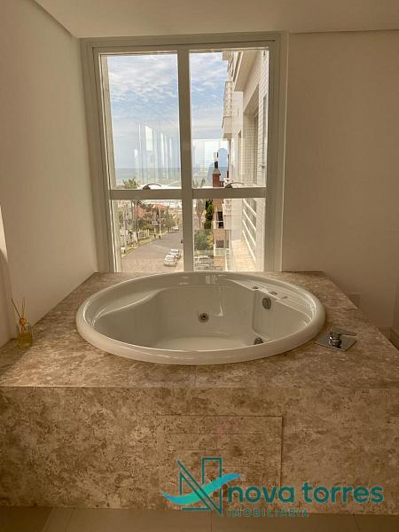 Apto com 3 suítes (sendo 1 com closet e hidromassagem), Living 2 ambientes com lareira, Sacada aberta com vista para o mar, Cozinha tipo americana, área de serviço separada, sacada lateral, 2 vagas de garagem sendo 1 Coberta e outra Descoberta e lavabo!