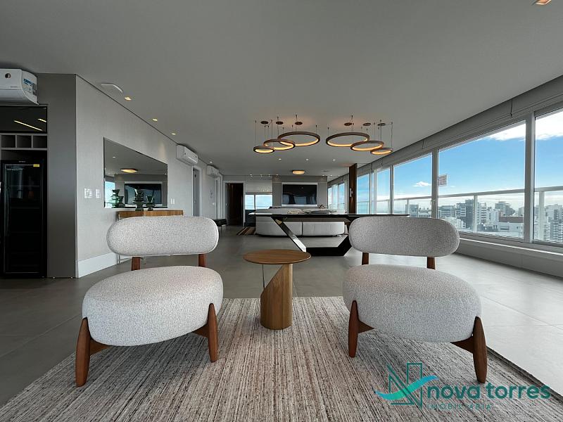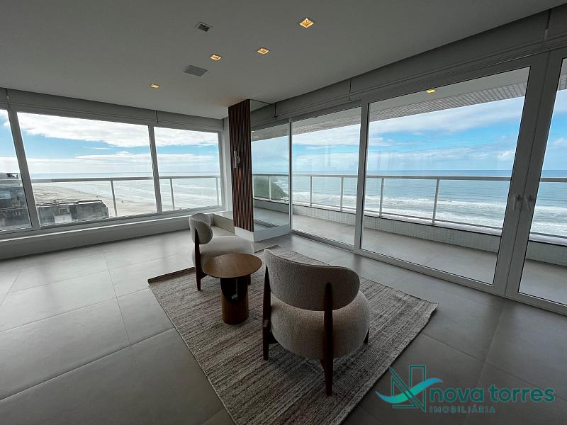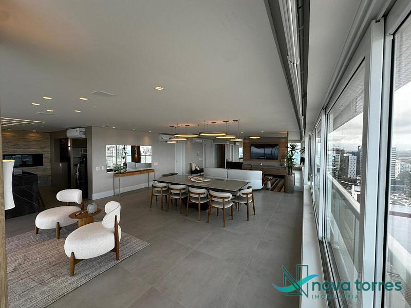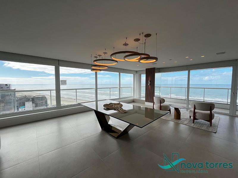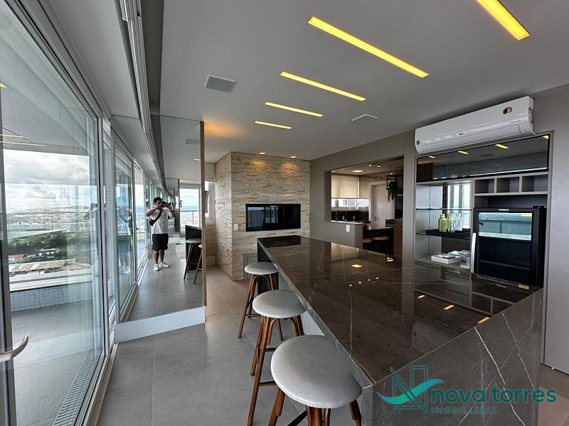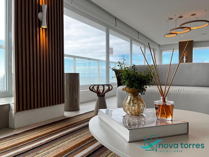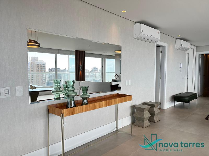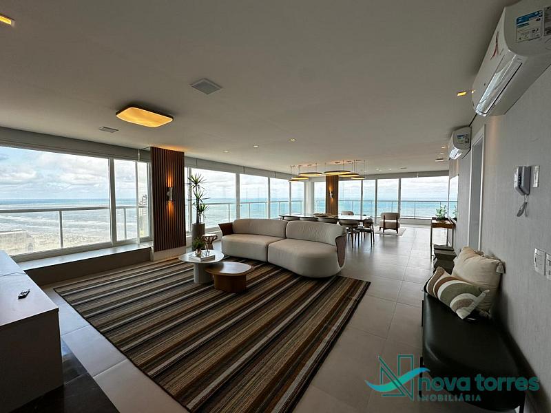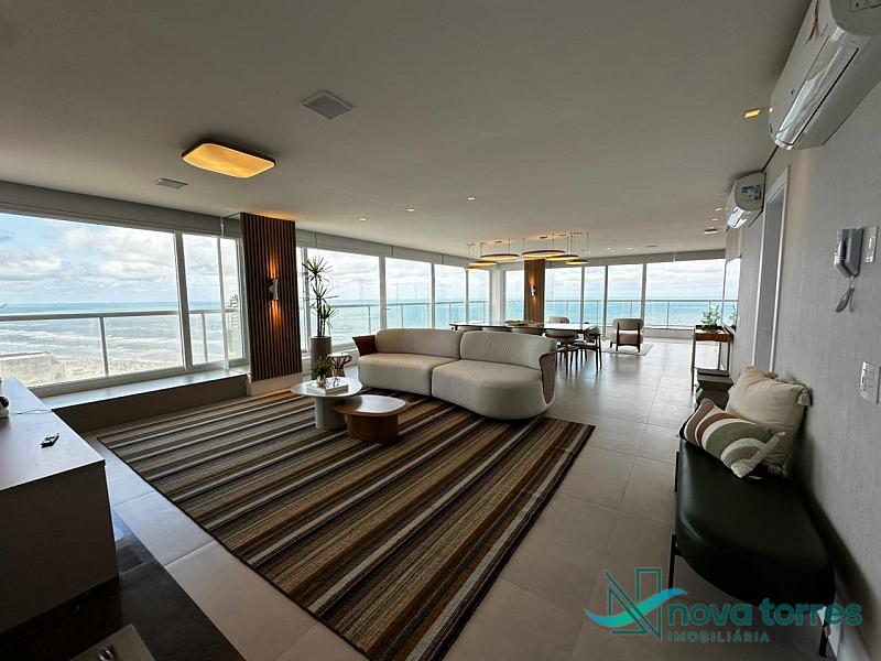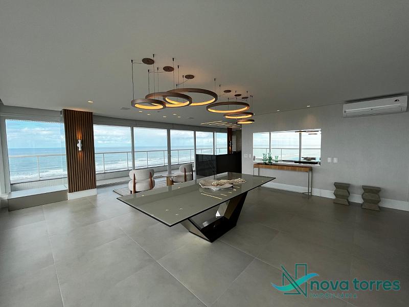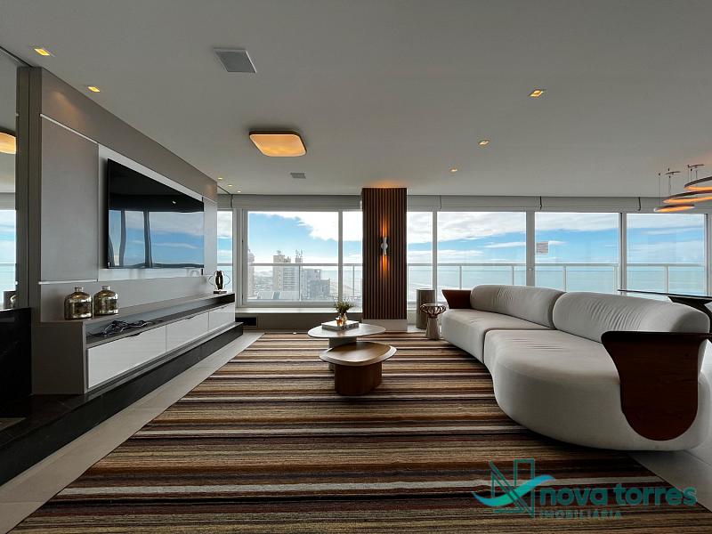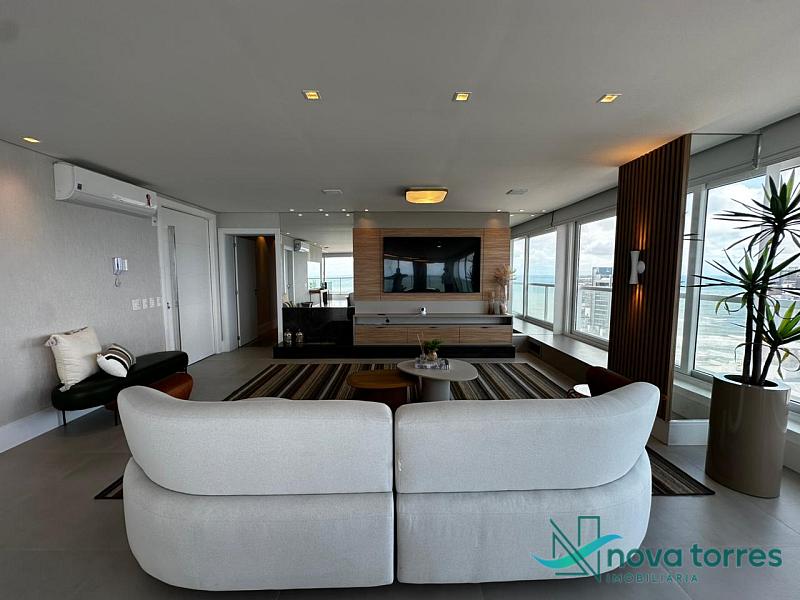 Com uma vista ampla e definitiva para o mar, este apartamento impressiona pelos seus 296,39 m² privativos, distribuídos de forma funcional e elegante em um andar alto com posição solar leste. São 4 suítes, incluindo uma suíte master com hidromassagem e closet, além de lavabo, banheiro social e ambientes amplos e integrados para até três salas. O imóvel conta ainda com sacada com churrasqueira, espaço gourmet, cozinha equipada, área de serviço e infraestrutura completa para ar-condicionado split. Os acabamentos de alto nível incluem gesso rebaixado, piso em porcelanato e laminado, além de sistema de TV a cabo e vista panorâmica para o mar. O apartamento possui 3 vagas de garagem privativas. O empreendimento Infinity Ocean oferece estrutura completa de lazer e segurança: piscina, espaço fitness, salão de festas, sala de jogos, elevador, hall decorado, acessibilidade para PNE, gerador de energia, gás central, portão eletrônico, câmeras de segurança e medidores individuais. Uma oportunidade única para viver com exclusividade e sofisticação à beira-mar.