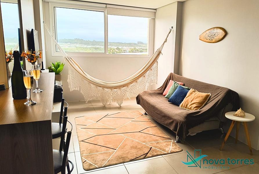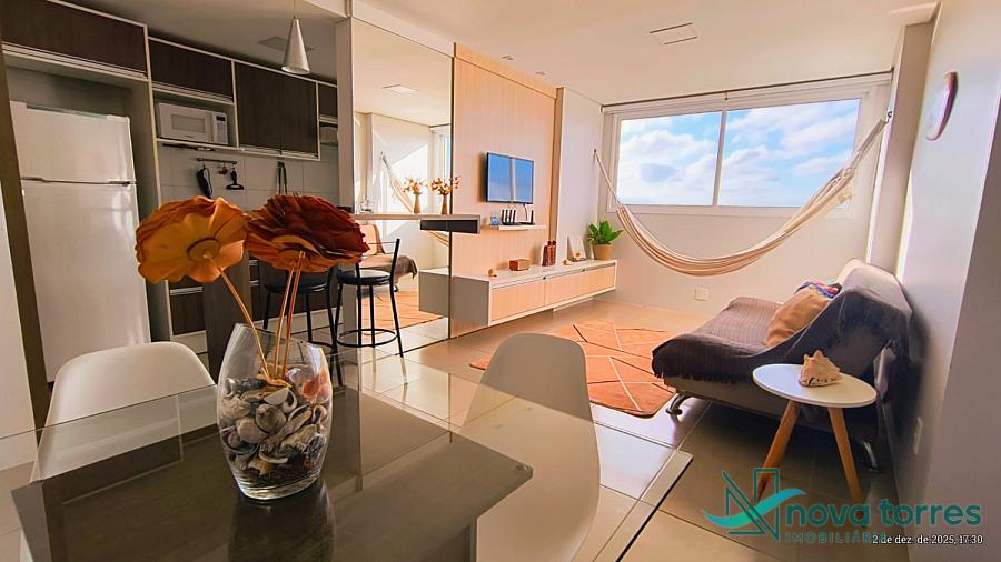 Ótimo apartamento em condomínio fechado, com 2 dormitórios, sendo 1 suíte, mais 1 banheiro social, ótimo living com 2 ambientes, cozinha com churrasqueira e área de serviço. Ainda possui uma linda vista para o Pôr do Sol, Rio Mampituba e Parque do Balonismo