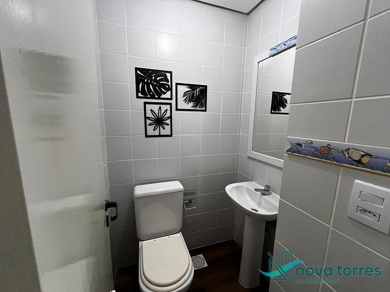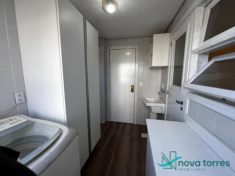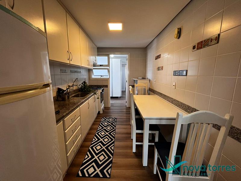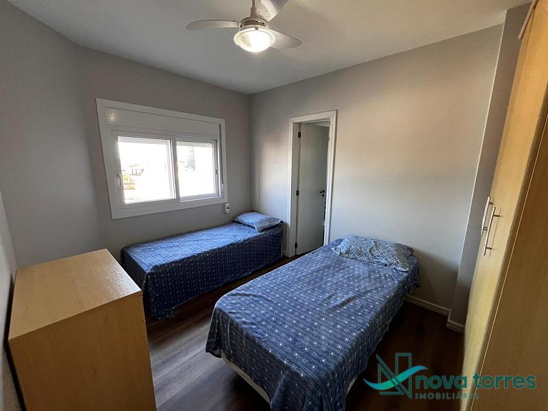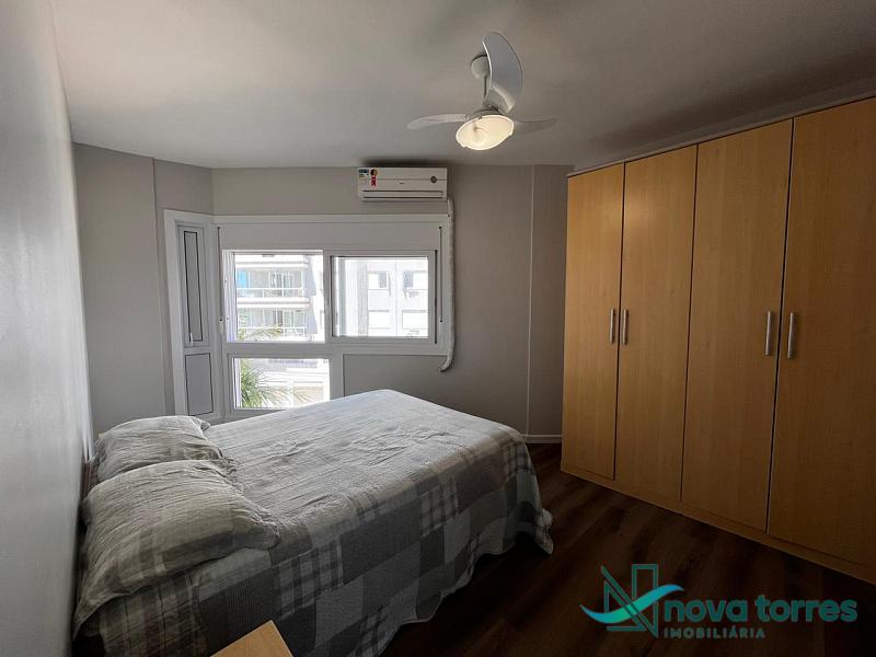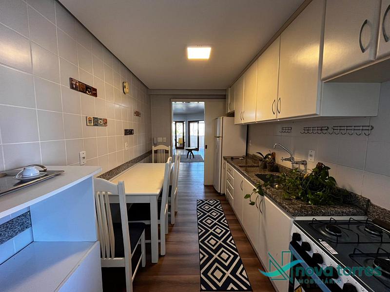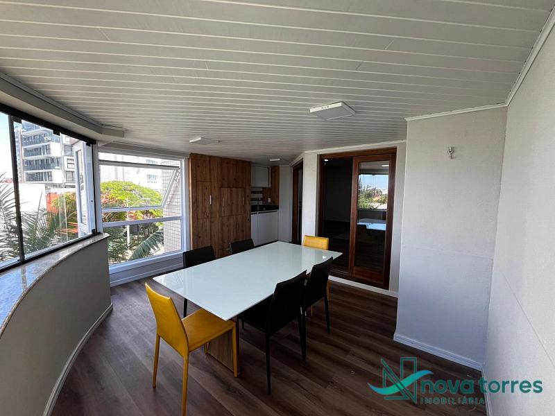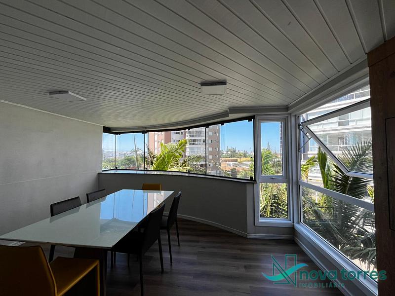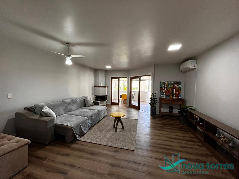Apartamento de 140 m² privativos, sendo três dormitórios, contando com três suítes. Apartamento mobiliado, sala de estar e jantar banheiro social e sacada com churrasqueira. O apartamento tem posição  solar leste, localizado próximo a praia, rio Mampituba e a nova orla gastronômica de Torres.