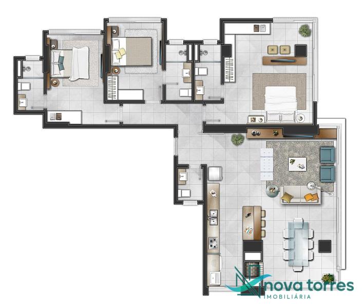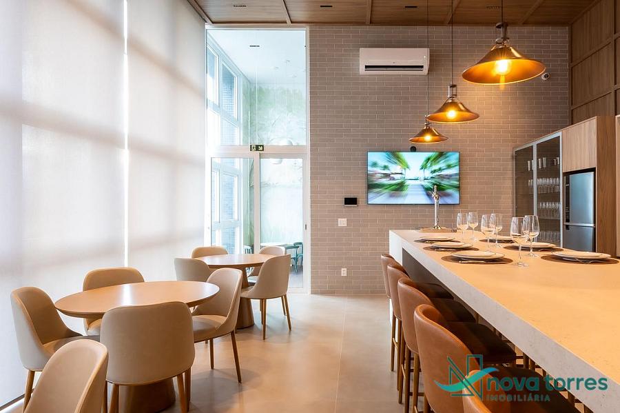 🔸 Apartamentos com 3 dormitórios, sendo 03 suítes, amplo living integrado com churrasqueira a carvão, para você ter momentos únicos com sua família e amigos.