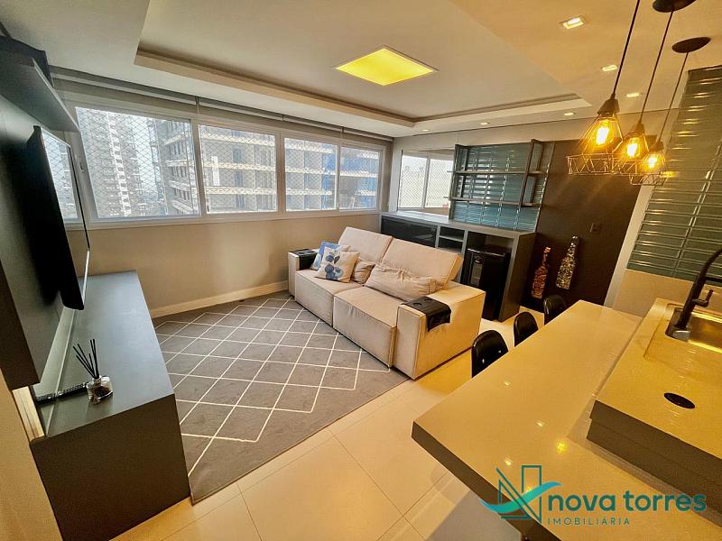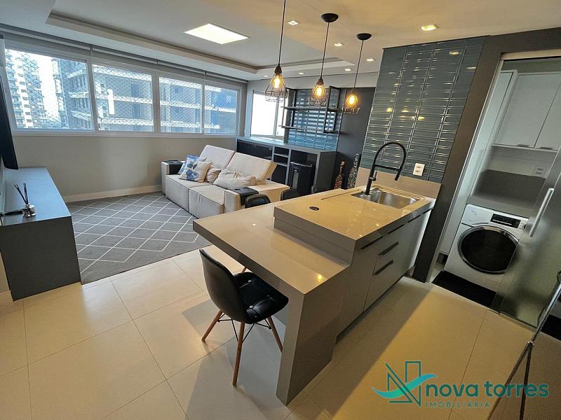 Apartamento totalmento mobiliado e decorado com dois dormitórios, sendo uma suíte confortável e bem planejada, além de uma sala aconchegante integrada á cozinha, proporcionando praticidade e modernidade no dia a dia. Todos os ambientes possuem excelente acabamento, ar -  condicionado e uma decoração sofisticada. Imóvel conta também com uma vaga de garagem dupla e uma piscina no terceiro andar.