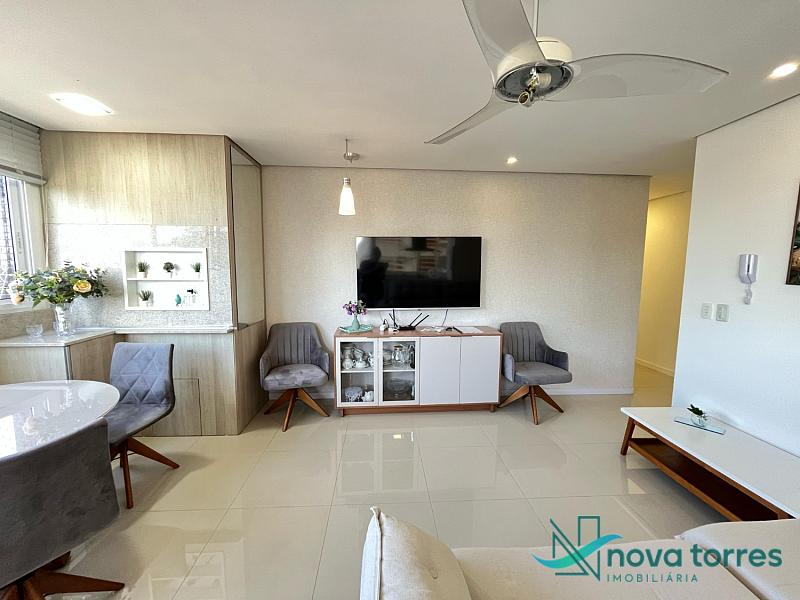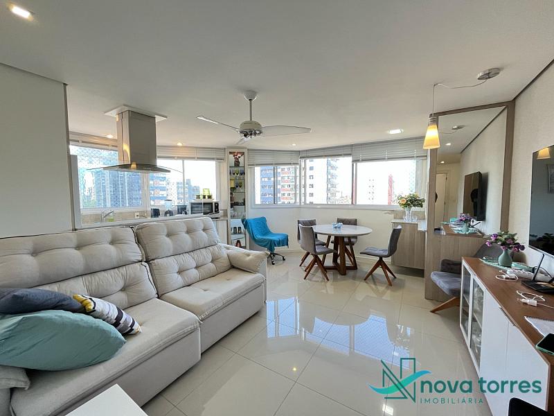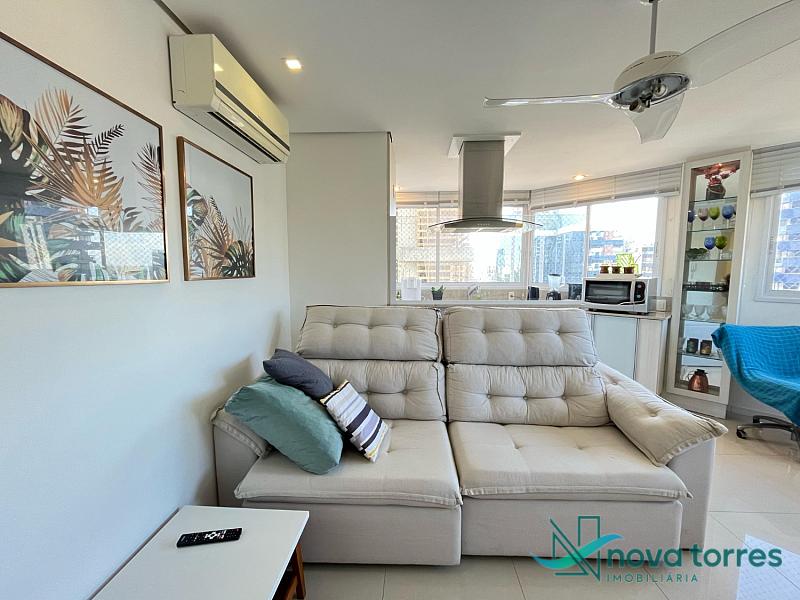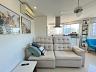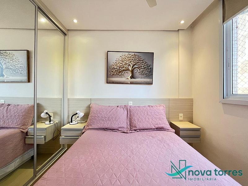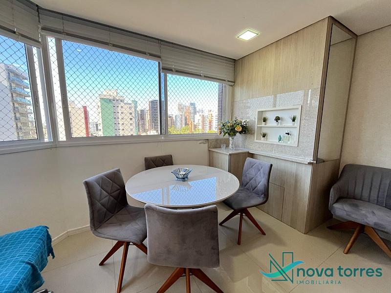 Apartamento, localizado em andar alto, com excelente posição solar norte-oeste, proporcionando iluminação natural e boa ventilação. Possui 02 dormitórios, sendo um suíte, um banheiro social, sala de estar e jantar integradas, cozinha americana, área de serviço, churrasqueira e ar-condicionado. Entre seus acabamentos e equipamentos, conta com piso porcelanato, acabamento em gesso, ventilador de teto e móveis planejados. O empreendimento oferece elevador, hall de entrada decorado, câmeras de segurança, portão eletrônico, medidores individuais, gás central e acessibilidade para pessoas com mobilidade reduzida. Além disso, inclui uma vaga de garagem numerada.