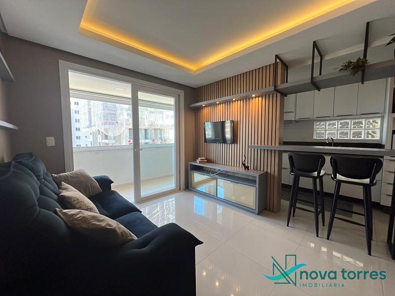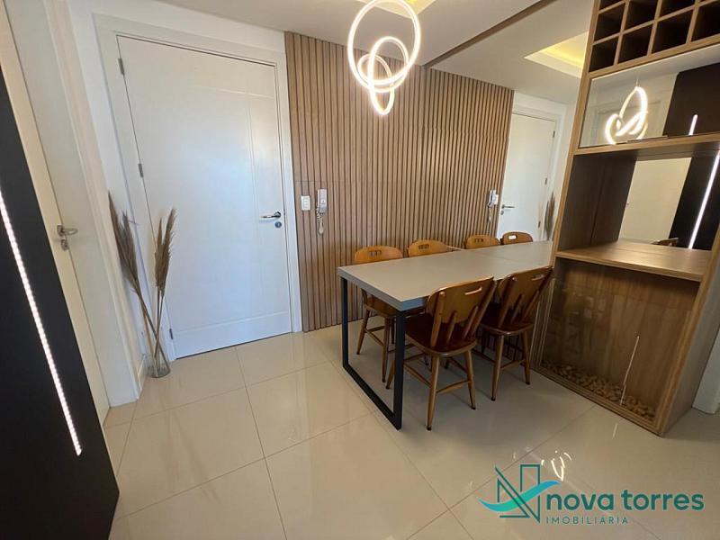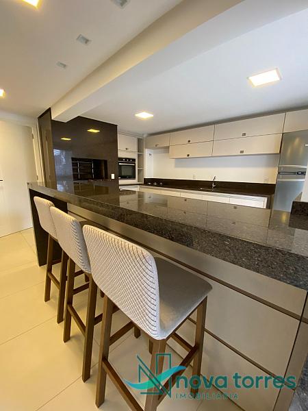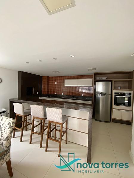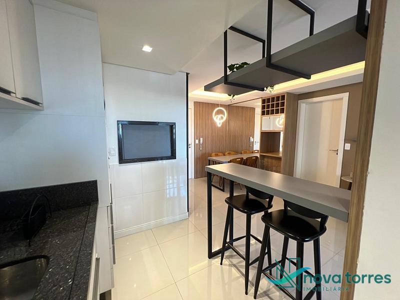 A área de estar, conectada à cozinha moderna, oferece um ambiente espaçoso e acolhedor, perfeito para receber amigos e familiares com sofisticação. A varanda integrada proporciona um espaço extra para relaxar e apreciar a vista, seja para um café da manhã ensolarado ou para admirar um deslumbrante pôr do sol.
