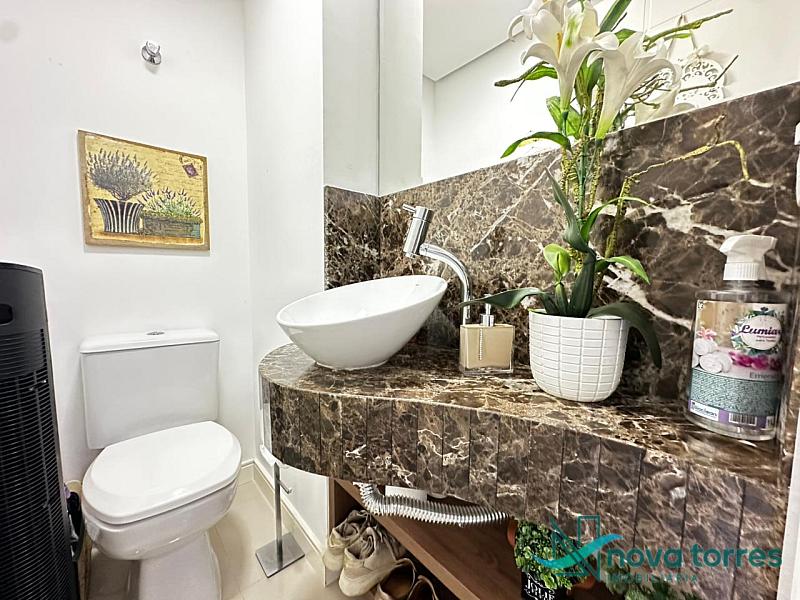 A área de estar, conectada à cozinha moderna, oferece um ambiente espaçoso e acolhedor, perfeito para receber amigos e familiares com sofisticação. A varandacom churrasquera proporciona um espaço extra para relaxar e apreciar a vista, seja para um café da manhã ensolarado ou para admirar um deslumbrante pôr do sol.