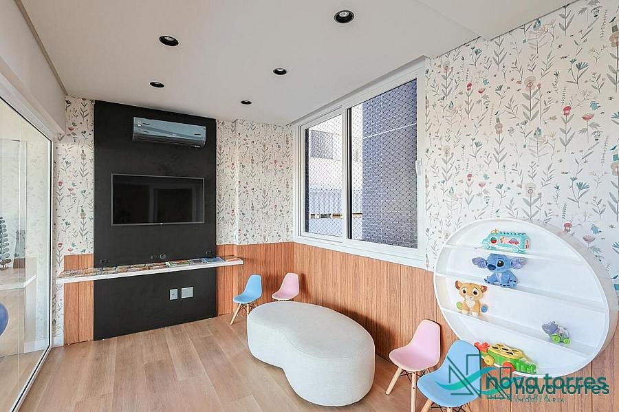 Apartamento com 02 dormitórios, sendo 01 suíte, 01 banheiro social, sala de estar e jantar integradas, sacada, cozinha tipo americana,churrasqueira, área de serviço.