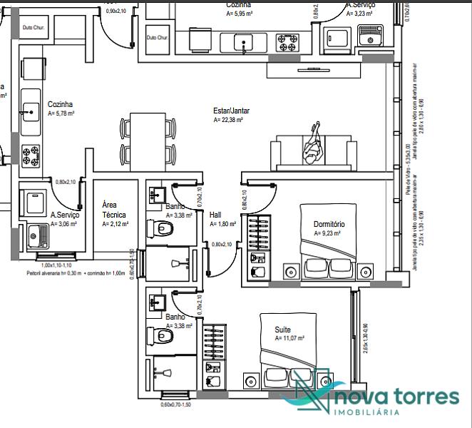 2 dormitórios (1 suíte)