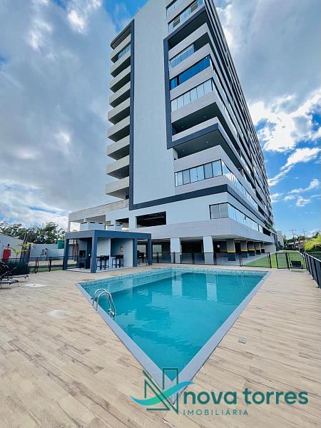 Apartamento com 02 dormitórios sendo 1 suíte, conta com 1 cozinha e sala integrada, 1 banheiro social. O imóvel conta com 1 sacada em L com churrasqueira e uma vista impecavel para o mar e rio Mampituba, o Edifício Niew Place conta com vagas de garagem amplas e cobertas, além de uma infraestrutura completa como piscina, salão de festas entre outros espaços prontos para receber você.