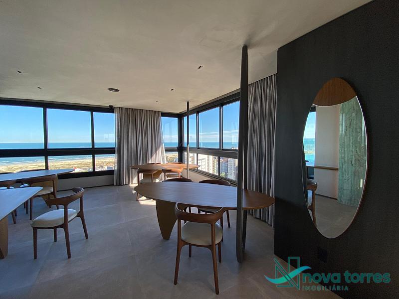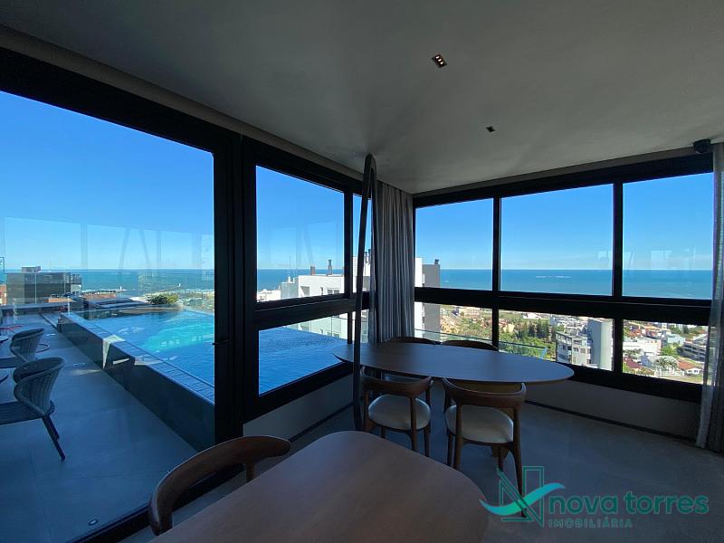 Apartamento de 2 dormitórios, sendo uma suíte, amplo living com salas de estar e jantar, cozinha tipo americana, área de serviço, e churrasqueira. Com uma vista perene ao Mar.