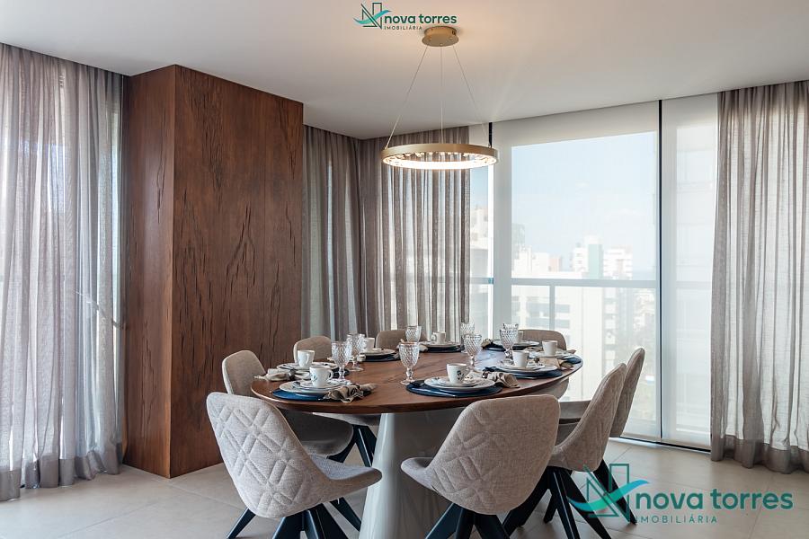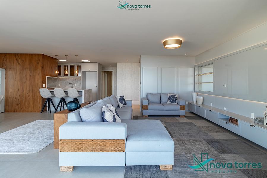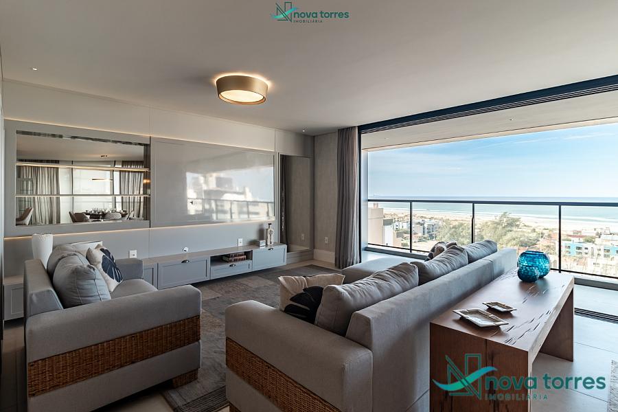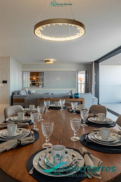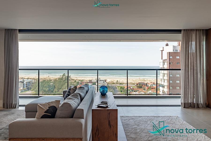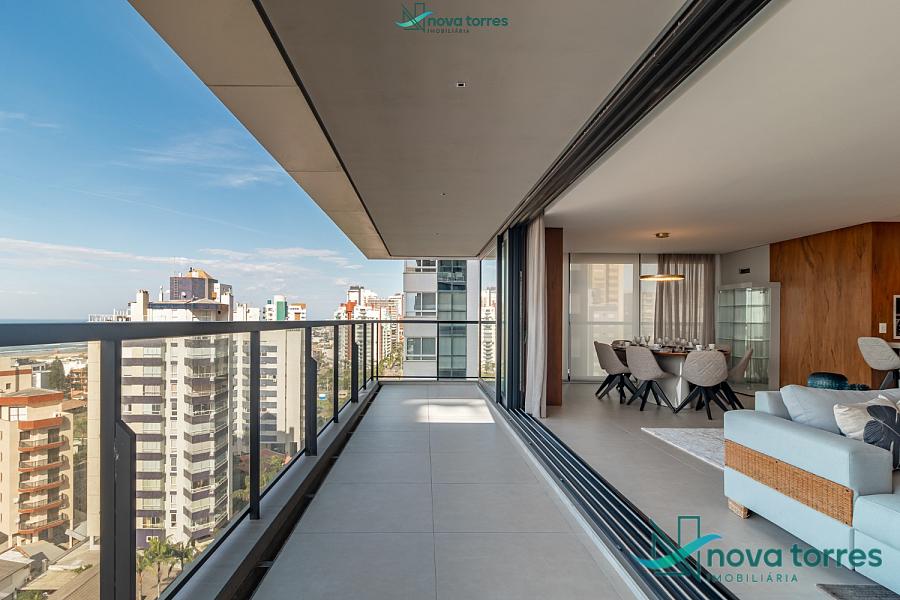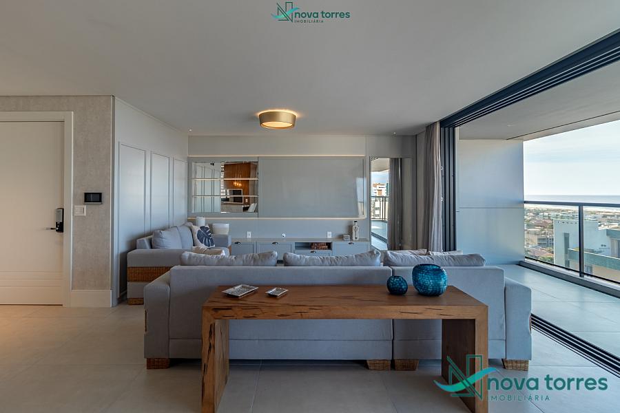 Com 220m² de área privativa, esse imóvel oferece 4 suítes, living integrado, espaço gourmet com churrasqueira e sacada com vista para o mar.