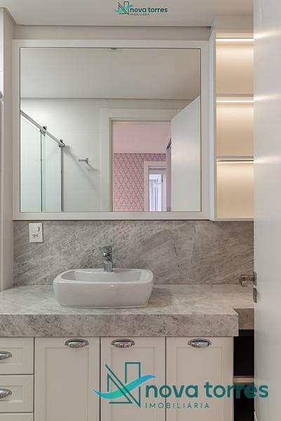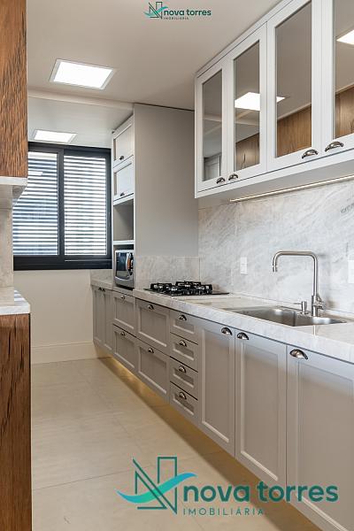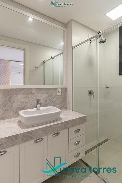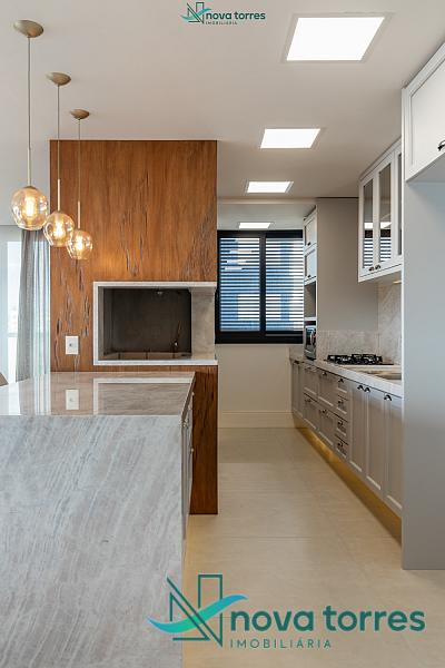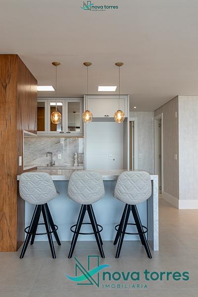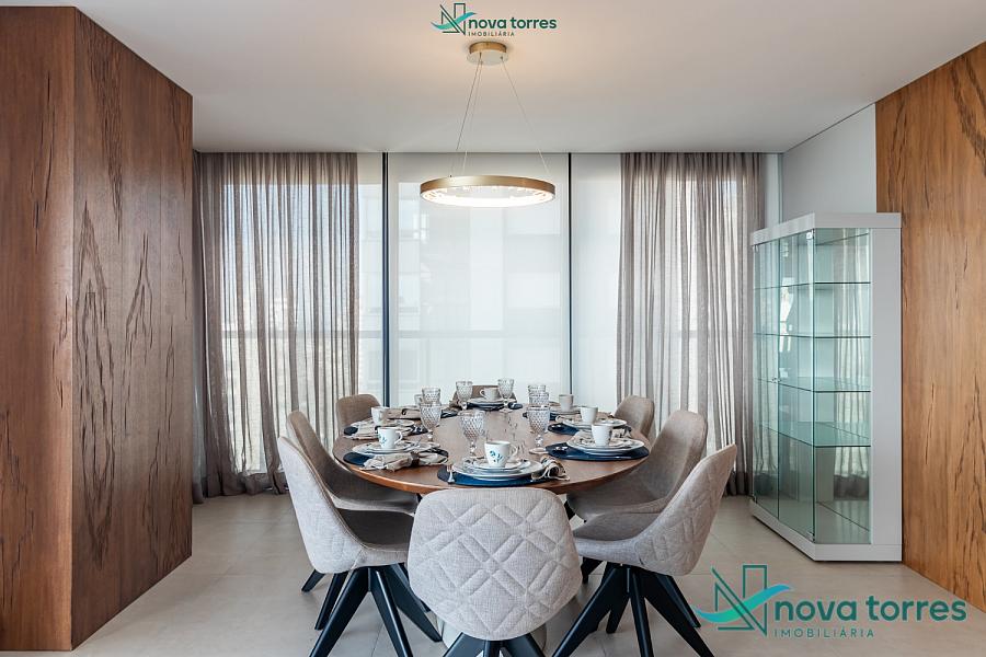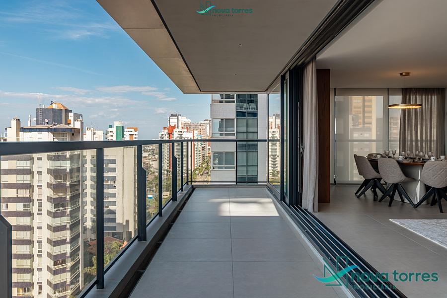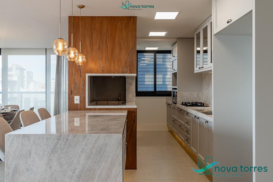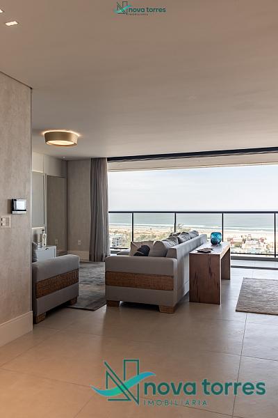 Com 220m² de área privativa, esse imóvel oferece 4 suítes, living integrado, espaço gourmet com churrasqueira e sacada com vista para o mar.