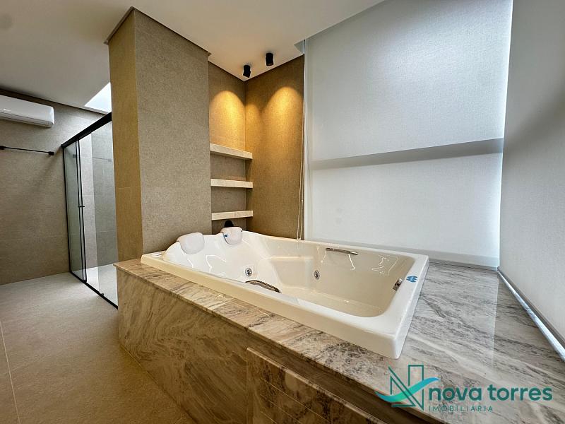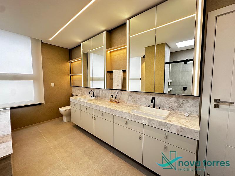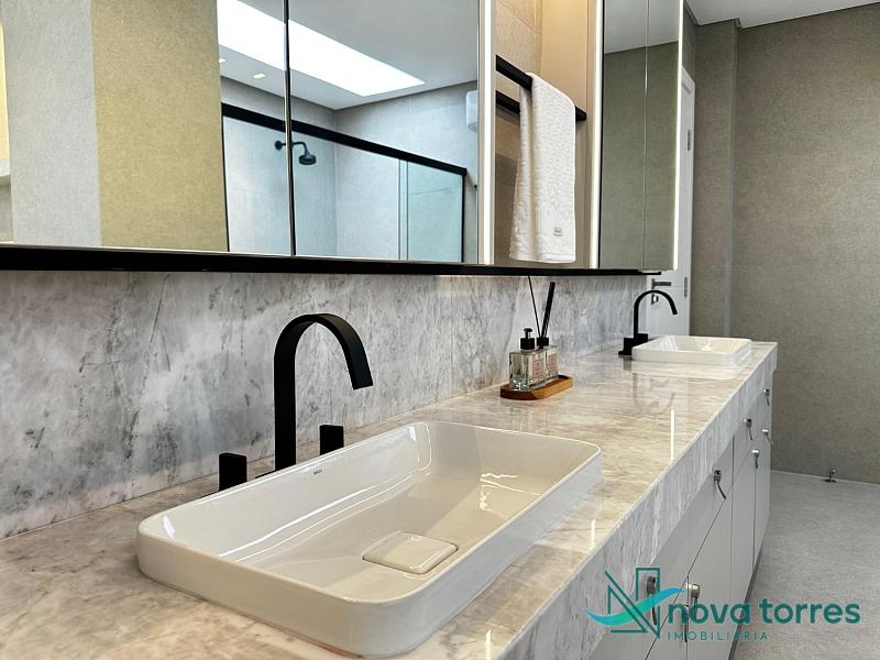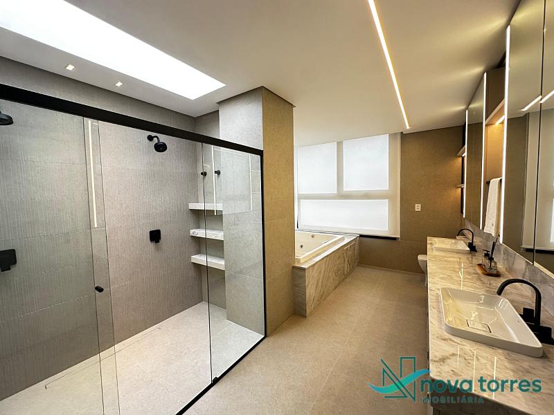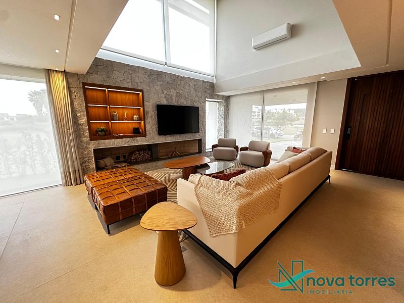 Casa de alto padrão no exclusivo condomínio Ilhas Park, com 377,50 m² de área privativa, projetada para oferecer conforto, sofisticação e bem-estar em todos os ambientes. São 5 suítes espaçosas, incluindo uma suíte master com closet e hidromassagem, além de living integrado com sala de estar, jantar e TV, espaço gourmet, copa/cozinha funcional, home office, estar íntimo, lavabo e jardim. A área externa conta com piscina privativa e vista livre, ideal para momentos de lazer com total privacidade. A planta contempla ainda entrada de serviço, área e banheiro de serviço, despensa e duas vagas de garagem privativas. Diferenciais como lareira, piso aquecido nos banheiros, ar-condicionado, calefação, móveis planejados, acabamento em gesso, porcelanato, sistema de alarme e fechadura eletrônica elevam o padrão e o conforto da residência. Localizada no Ilhas Park, condomínio fechado com infraestrutura completa e segurança 24h: piscinas (térmica, adulto e infantil), quadras de tênis e poliesportiva, salão de festas, brinquedoteca, espaço fitness, playground, sala de jogos, sauna, bar, pet place, deck molhado, espaço zen e medidores individuais. Com orientação solar leste-sul, esta residência oferece iluminação natural e ventilação privilegiada durante todo o dia.
