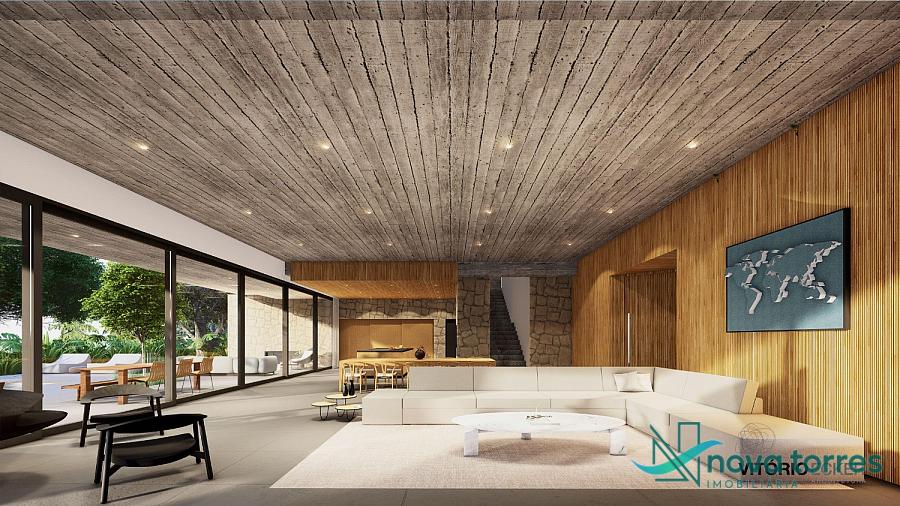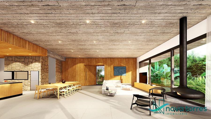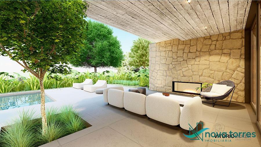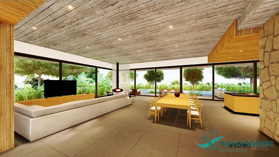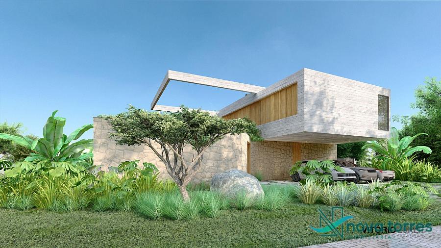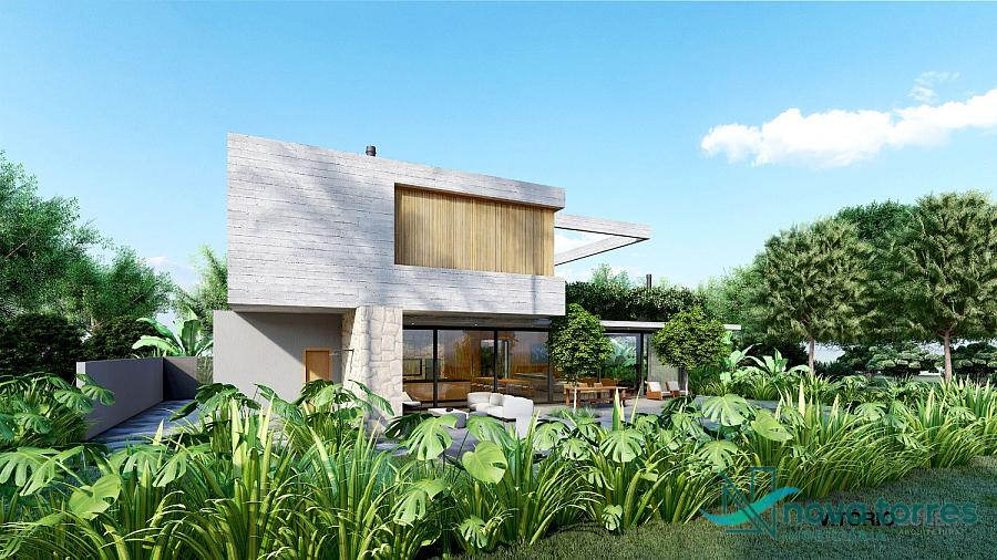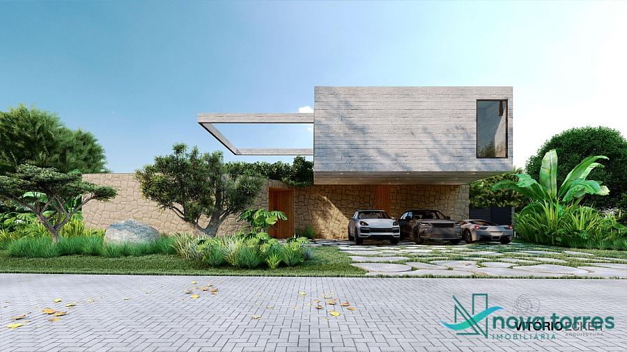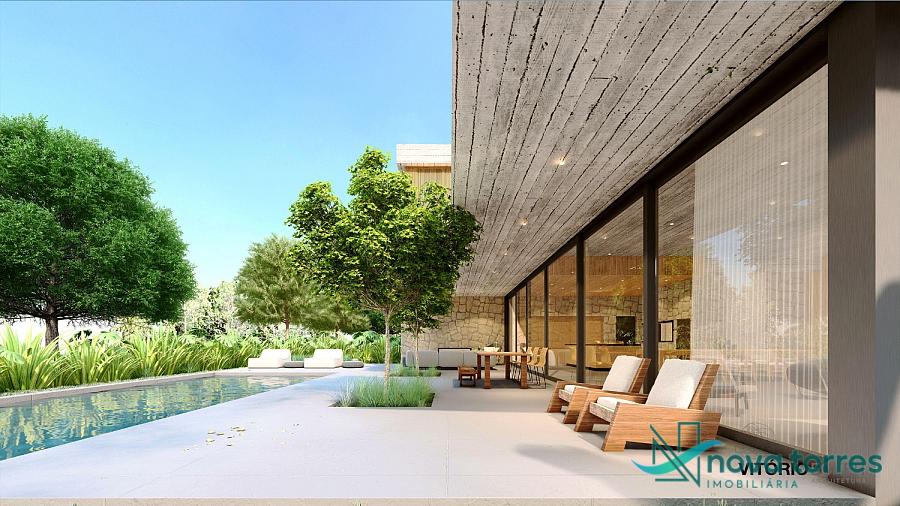 Casa contará com 604,0m² de área útil, contemplando 5 amplas suítes, sendo 1 master, 3 lavabos de uso social, sala de estar, sala de jantar, área gourmet, cozinha, área de serviço separada, estar externo com piscina e ampla varanda, pátio de serviço com entrada de serviço.