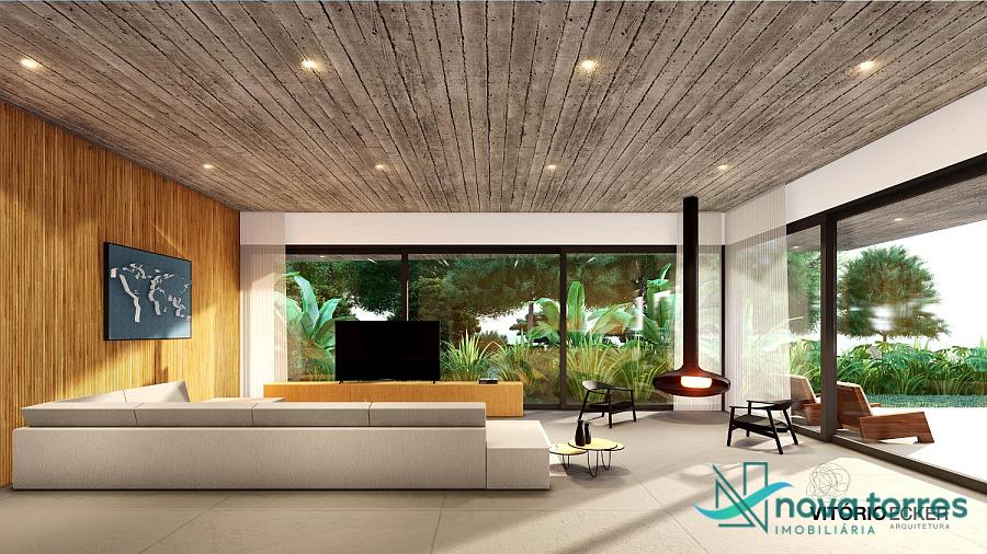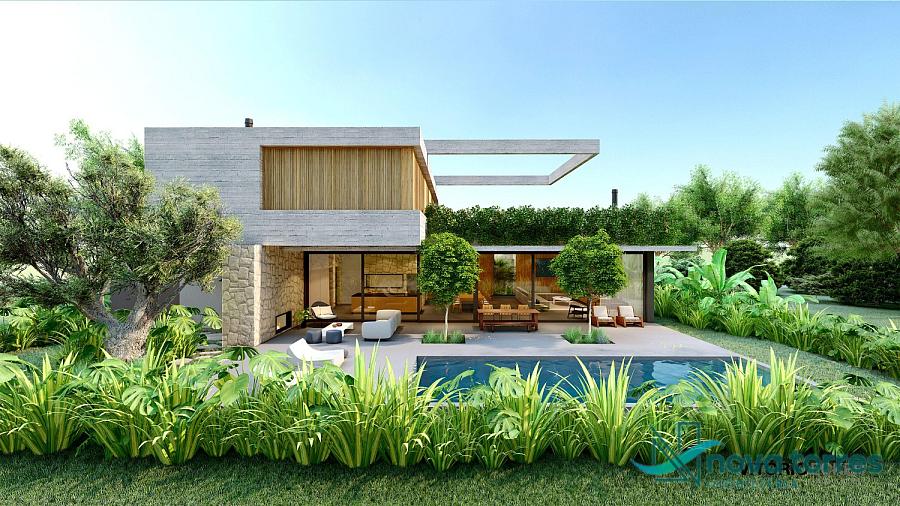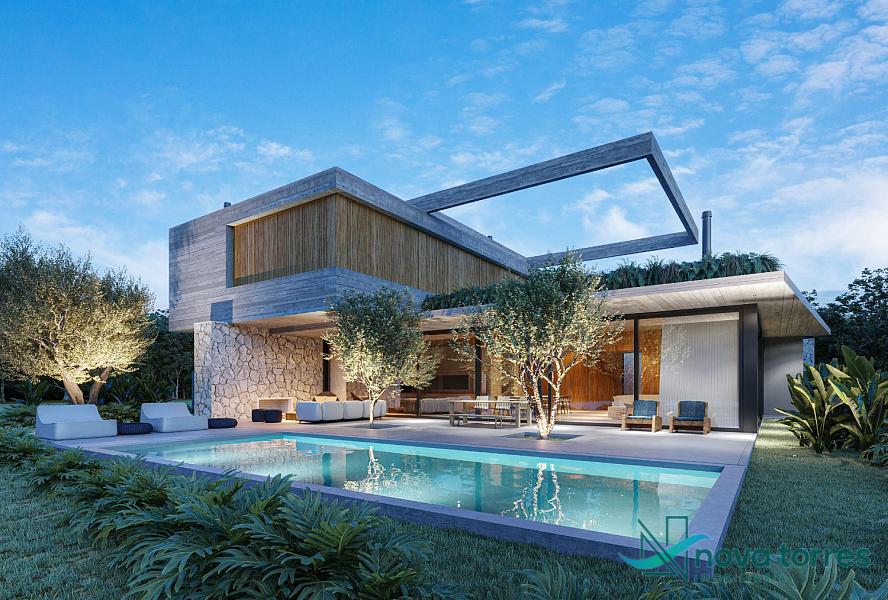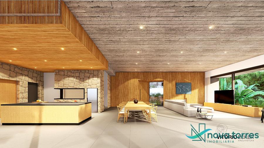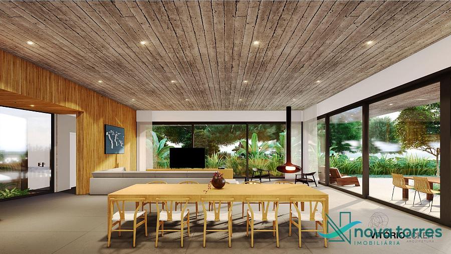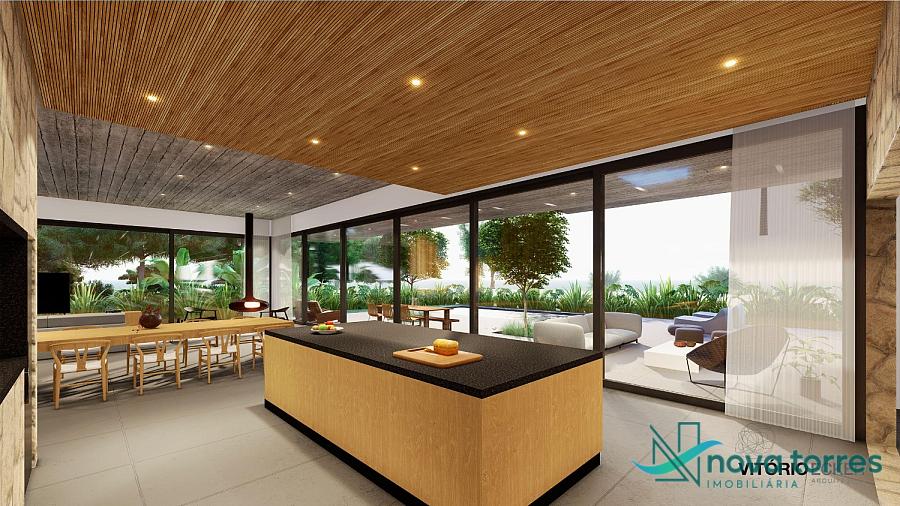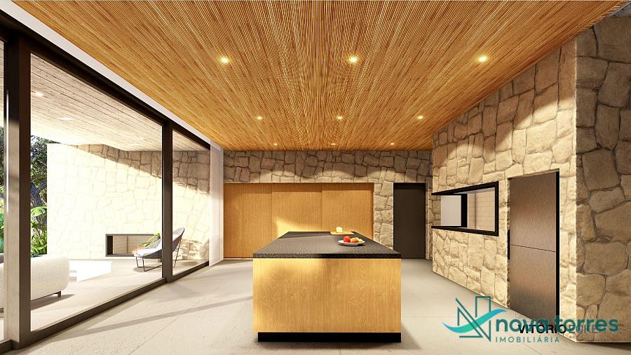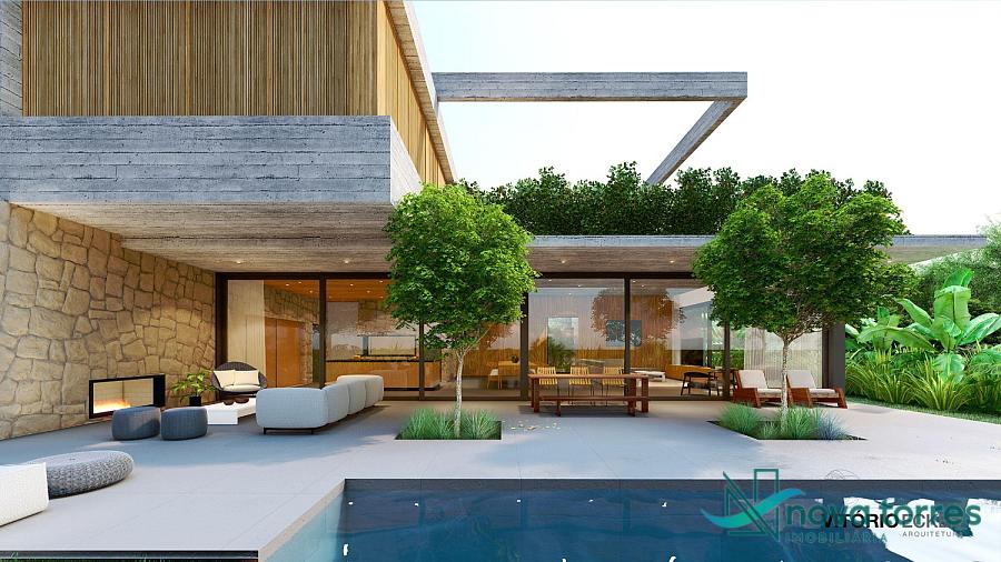 Casa contará com 604,0m² de área útil, contemplando 5 amplas suítes, sendo 1 master, 3 lavabos de uso social, sala de estar, sala de jantar, área gourmet, cozinha, área de serviço separada, estar externo com piscina e ampla varanda, pátio de serviço com entrada de serviço.
