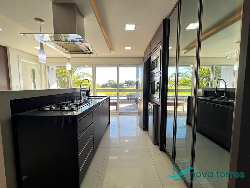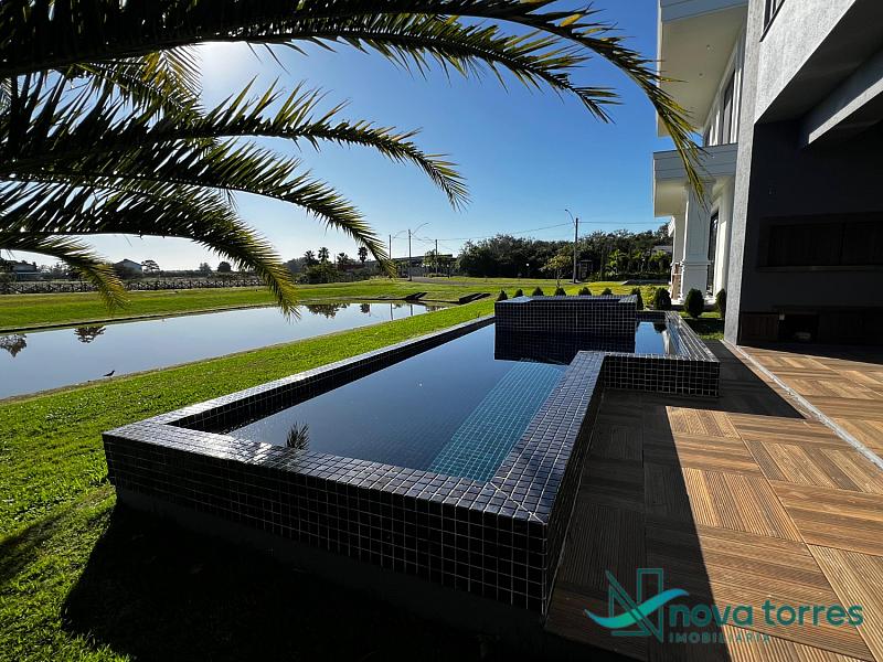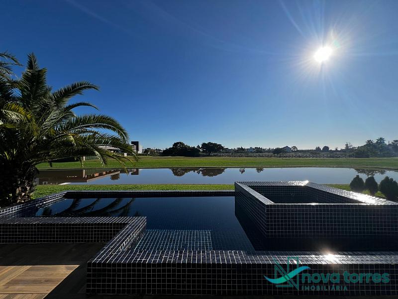 Com projeto contemporâneo e ambientes integrados, o imóvel conta com 3 suítes, lavabo, estar, jantar, cozinha, área de serviço e jardim. Um dos grandes destaques é a piscina com borda infinita voltada para o lago, proporcionando uma vista deslumbrante e permanente. No interior da residência, o conforto se completa com uma hidromassagem privativa.