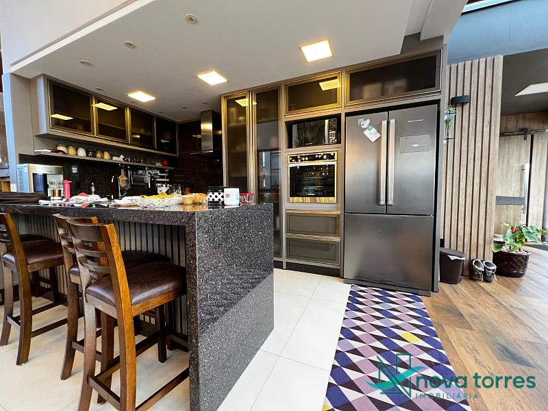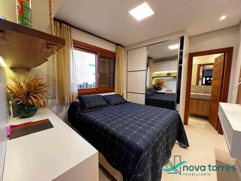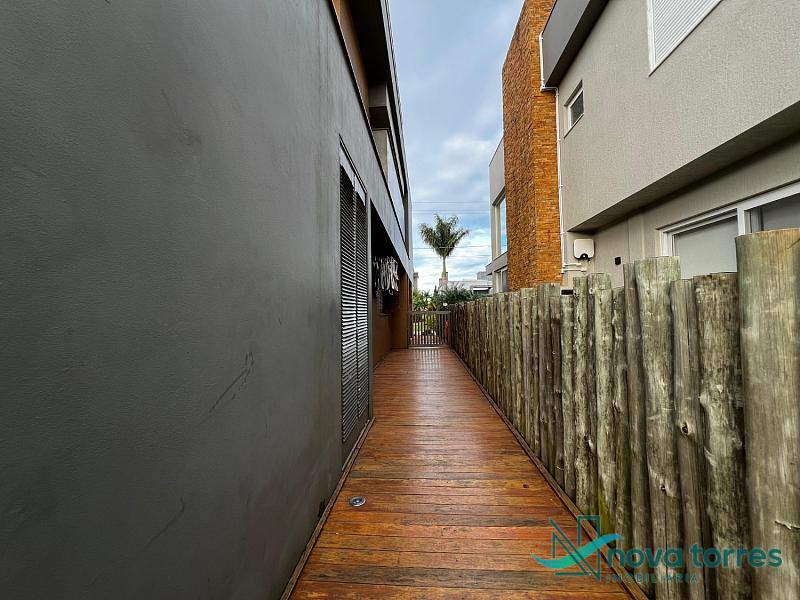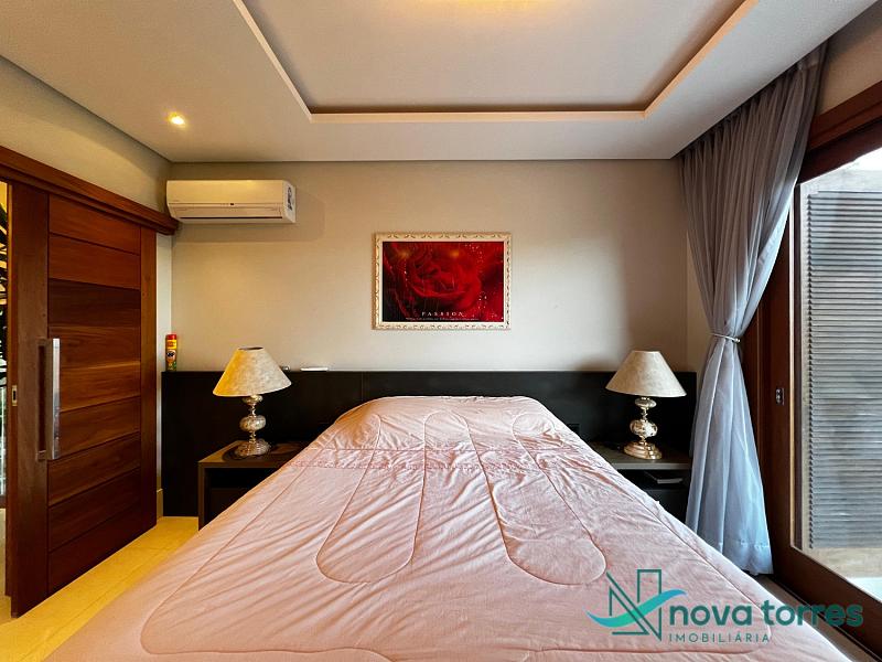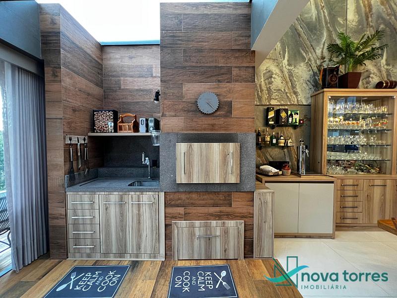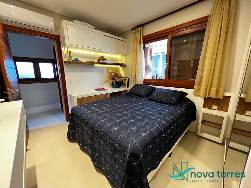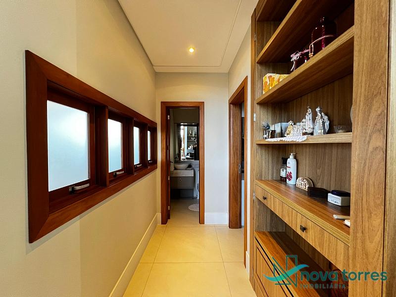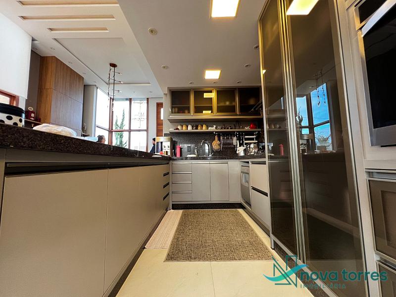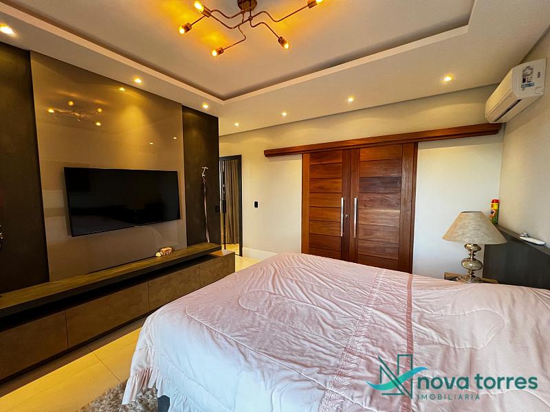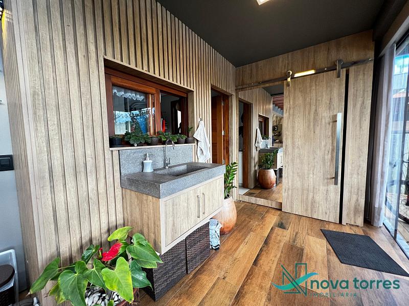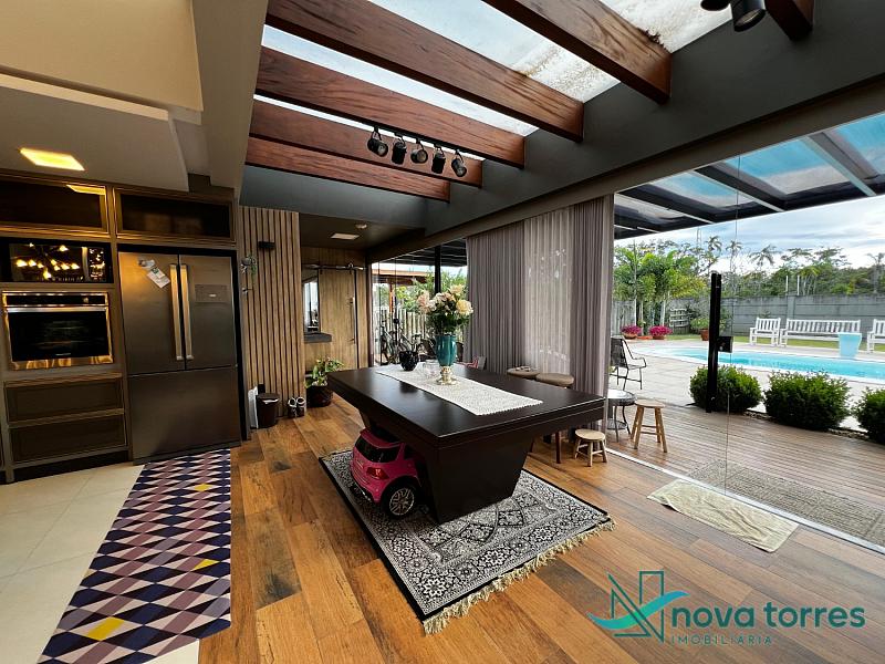 Residência de alto padrão no condomínio Reserva das Águas, com projeto contemporâneo, ambientes generosos e acabamentos sofisticados. Com 350 m²de área construída,  em um excelênte  terreno com posição solar leste-oeste. A casa se destaca pelo conforto, funcionalidade e elegância em cada detalhe. Distribuída em dois pavimentos, conta com 3 suítes, sendo uma delas com closet privativo, além de lavabo, banheiro social e espaços de convivência amplos e integrados. A área social possui sala de estar com pé-direito duplo, sala de jantar, cozinha americana com móveis planejados e espaço gourmet com churrasqueira, totalmente voltado para o lazer. Na área externa, um jardim impecável emoldura a piscina aquecida, cercada por deck e paisagismo, ideal para aproveitar ao ar livre com privacidade. A casa também possui placas solares, garantindo eficiência energética, além de internet instalada, lareira, ar-condicionado e aquecimento de água. Com duas vagas de garagem privativas, acabamentos em gesso, piso em porcelanato e esquadrias amplas que valorizam a luz natural, a residência oferece ainda entrada de serviço, lavanderia e varanda integrada. O condomínio entrega infraestrutura completa de lazer e segurança: portaria 24h, piscinas (térmica, adulto e infantil com deck molhado), sauna, salão de festas, espaço fitness, brinquedoteca, playground, mini mercado, espaço zen, pet place, quadras de tênis, padel e poliesportiva, além de quiosques e sala de jogos. Um imóvel ideal para quem valoriza sofisticação, conforto e qualidade de vida em um dos endereços mais desejados de Torres.