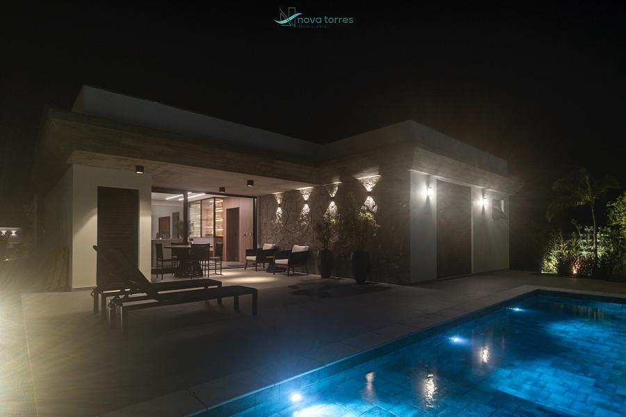 A piscina é um grande destaque, proporcionando um ambiente agradável para relaxar e curtir momentos de lazer com amigos e família; e a vista para o espelho d'água e o bosque adiciona um toque de tranquilidade e beleza ao ambiente, criando um local perfeito para fugir do estresse do dia a dia e aproveitar momentos de tranquilidade e descanso.