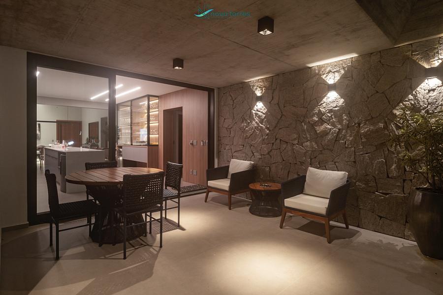 A combinação da arquitetura moderna com os elementos naturais cria uma atmosfera aconchegante e acolhedora, onde é possível desfrutar da beleza da natureza sem abrir mão do conforto e da comodidade, além de proporcionar um ambiente agradável e tranquilo para descansar e recarregar as energias.