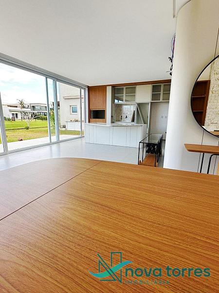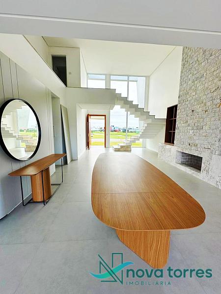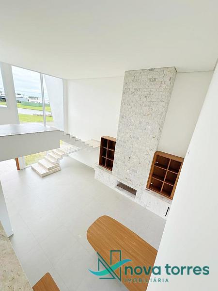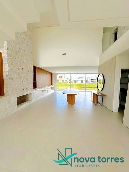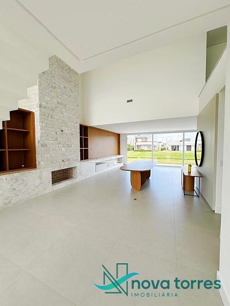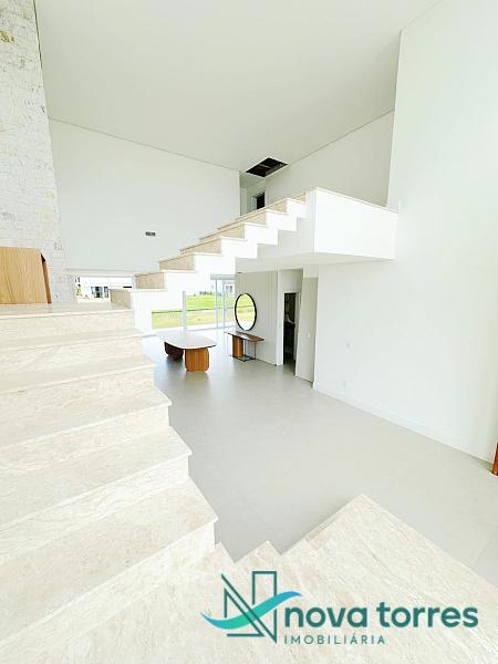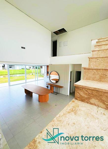 Metragem 330m² privativos, distribuídos em 4 suítes (sendo 03 com sacada), amplo living jantar/estar, lareira, cozinha com ilha, churrasqueira, área de serviço separada, lavabo, a suíte térrea é opcional também para home office, possui porta janela fácil acesso, pátio aos fundos vista lago espaço para piscina, orientação solar frente norte, garagem com espaço para até 4 carros, persianas automatizadas.