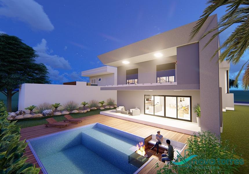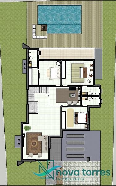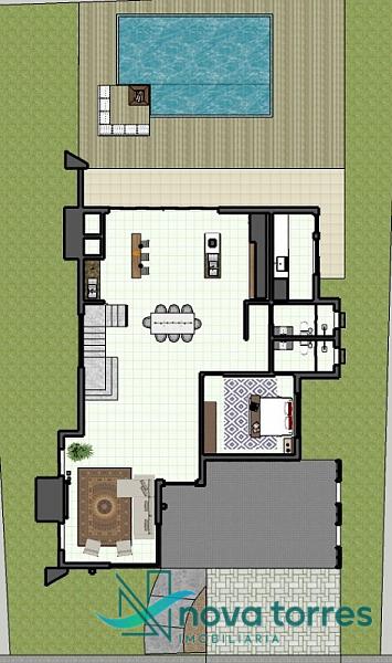 Casa no Condomínio OceanSide com entrega em Julho de 2023, possuindo 4 suítes com 6 banheiros, living integrado com cozinha, piscina, Churrasqueira e Espaço Gourmet.