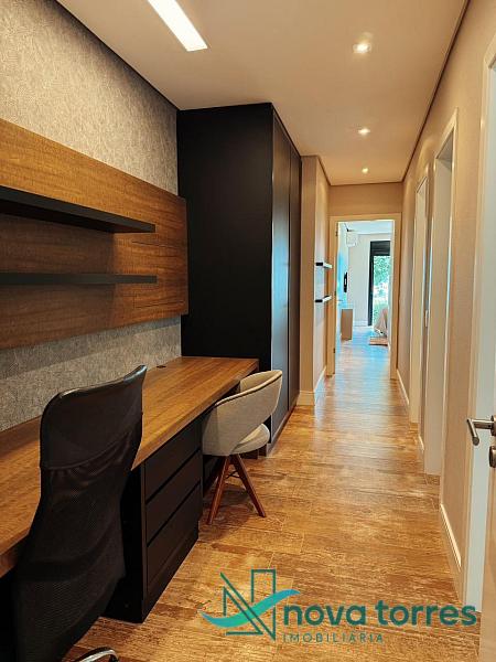 Os acabamentos incluem piso cerâmico, piso de madeira e porcelanato, agregando sofisticação e praticidade aos ambientes.