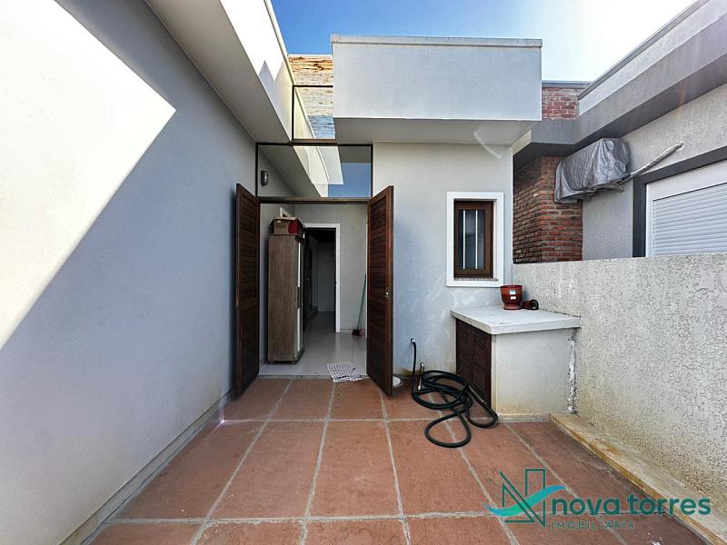 Residência na Bela Torres, com 100 m² de área total e dois dormitórios, ideal para quem busca praticidade em uma região tranquila e valorizada. Os ambientes são bem distribuídos, com sala de estar e sala de jantar integradas, cozinha funcional, área de serviço e jardim que complementa a área externa. O imóvel possui banheiro social, dois espaços de garagem privativos e posição solar sul, garantindo luminosidade equilibrada ao longo do dia. Entre as características, destaca-se o acabamento em gesso, lareira, churrasqueira e ventiladores de teto, agregando conforto e funcionalidade ao cotidiano. Uma excelente opção para viver ou investir em uma das áreas mais procuradas do litoral.