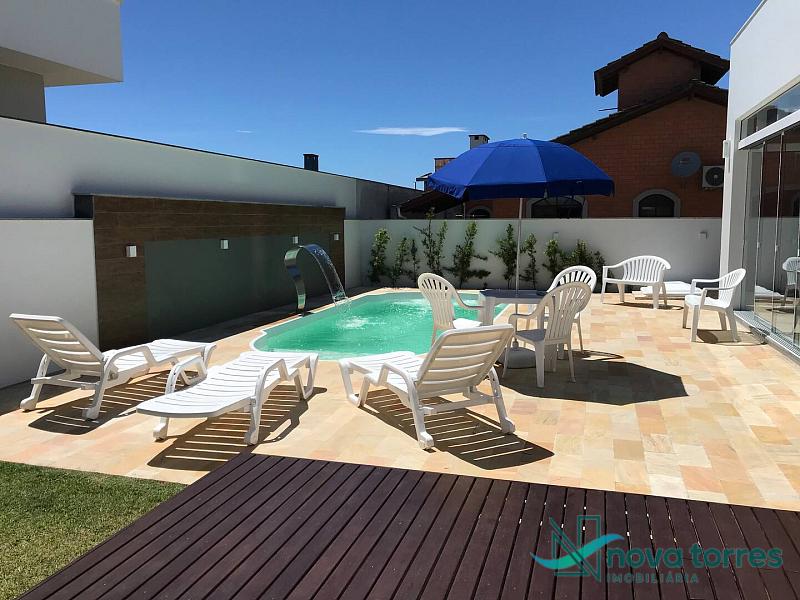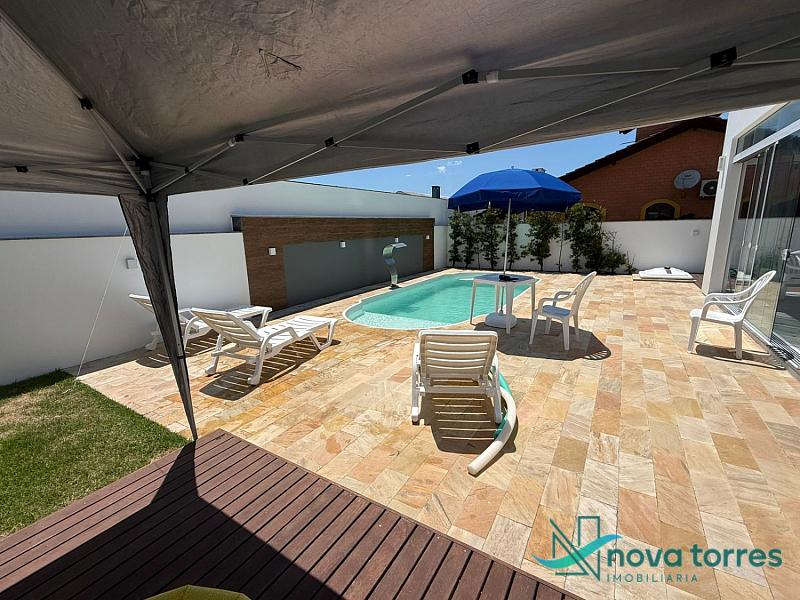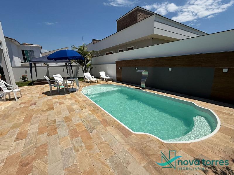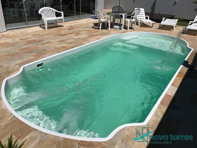 Este lugar único tem seu próprio estilo. Construída para morar, na quadra do mar, tranquila, com infraestrutura completa, 3 suítes, 4 banheiros, garagem fechada para 2 carros, sala, varanda e cozinha integrada, área de serviço com tanque e lavanderia, chuveiros com aquecimento a gás, churrasqueira com grelhas e biscoitos. Sala de escritório no andar superior, espaço fechado na área da churrasqueira. Piscina de ozônio de 21.000 litros com aquecimento solar e cascata, hidromassagem. Linda e única!