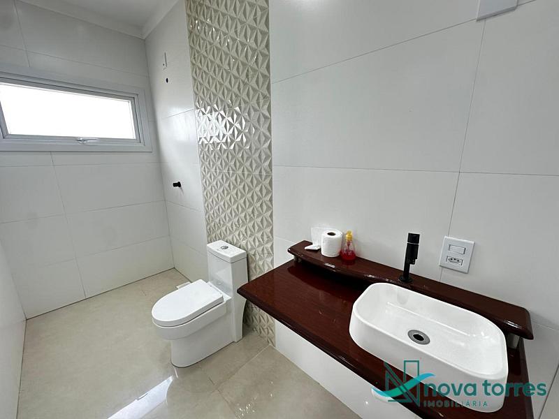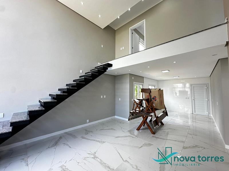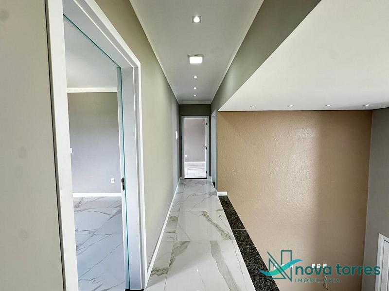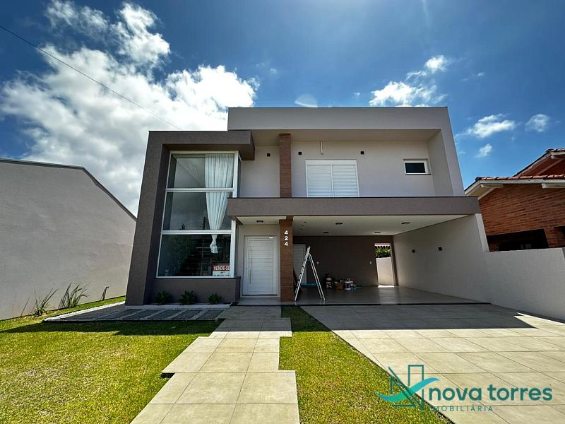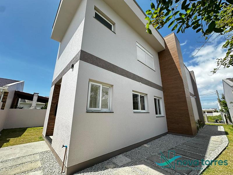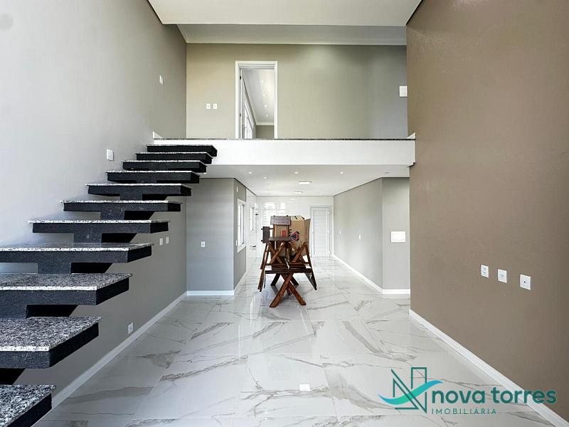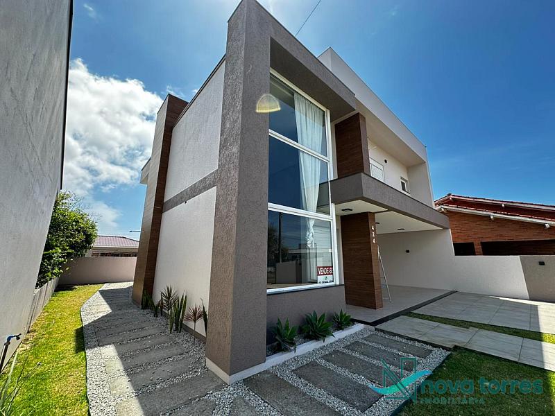 Casa de dois andares à venda na Bela Torres, oferecendo 160 m² de área total e um projeto contemporâneo que privilegia amplitude, iluminação natural e acabamentos de padrão superior. O imóvel dispõe de quatro dormitórios, sendo três suítes, além de living com pé-direito duplo que valoriza a entrada de luz através da ampla fachada envidraçada. A área social integra sala de estar e sala de jantar, com pisos em porcelanato e detalhes em gesso que reforçam a sensação de elegância e modernidade. A cozinha é funcional e bem iluminada, acompanhada de área de serviço independente. No pavimento superior, as suítes contam com ótima ventilação, iluminação e sacada, proporcionando mais conforto e privacidade. A residência ainda oferece quatro banheiros no total, garagem privativa para dois veículos, jardim frontal e um pátio nos fundos, ideal para quem busca um espaço externo amplo. A propriedade conta também com churrasqueira e acabamentos de qualidade, garantindo durabilidade e estética contemporânea. Com posição solar sul e arquitetura marcante, esta casa na Bela Torres é uma excelente opção para quem procura um imóvel novo, moderno e bem distribuído.