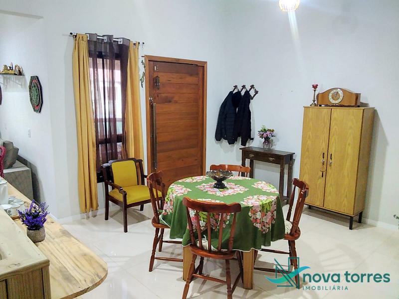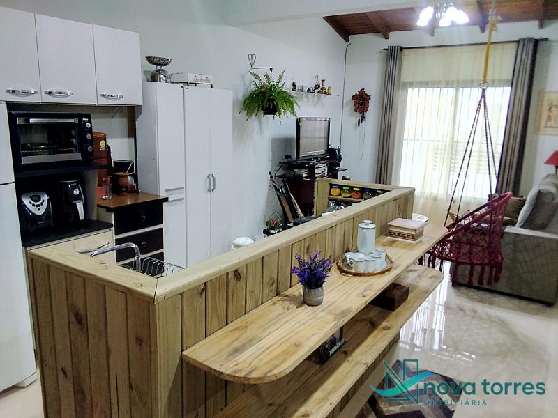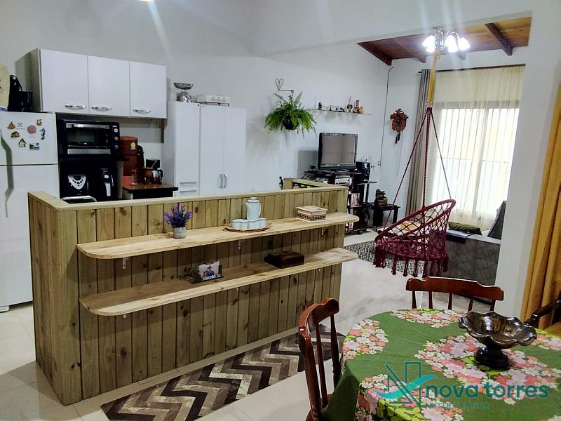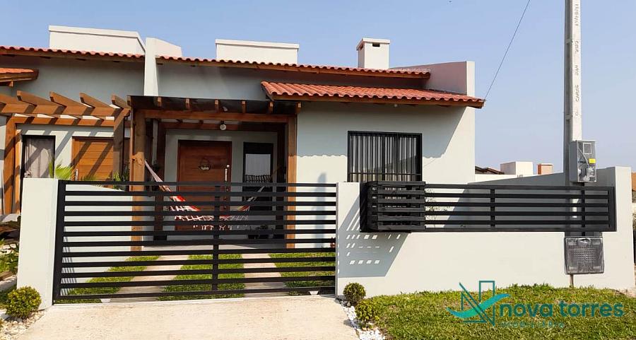 A casa possui sala de estar, cozinha com churrasqueira e sala de jantar conjugadas com pé direito alto, o ambiente possui um balcão estilo colonial que separa a cozinha da sala de jantar. Possui 2 quartos, sendo 1 suíte, banheiro social (banheiros equipados de Box de vidro temperado, balcão e espelho),  área de serviço fechada com sótão que serve como depósito, garagem coberta e pátio na frente, fundos e lateral. Imóvel com grades nas aberturas e portão de entrada. A garagem destaca-se por possuir pergolado coberto com policarbonato oferecendo proteção ao veículo e a porta de entrada proporcionando também uma boa iluminação.