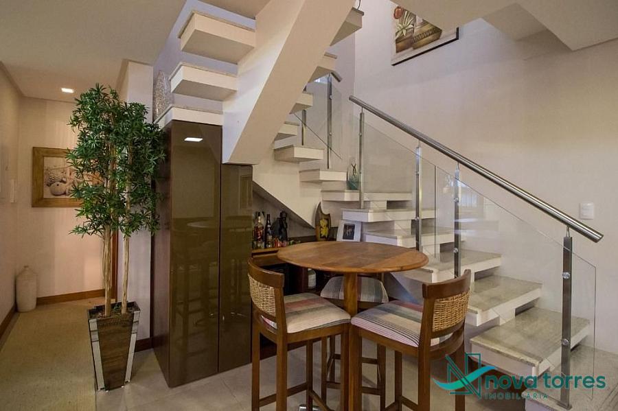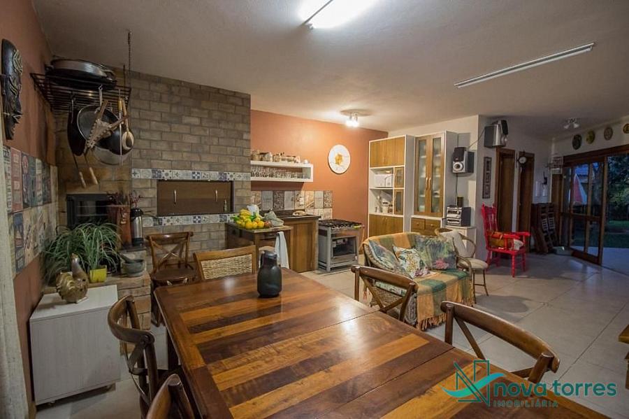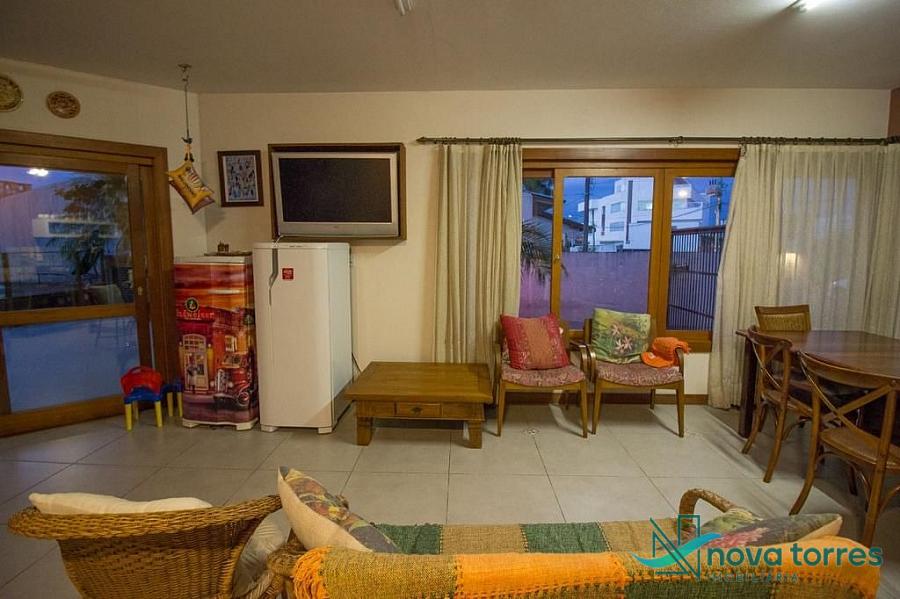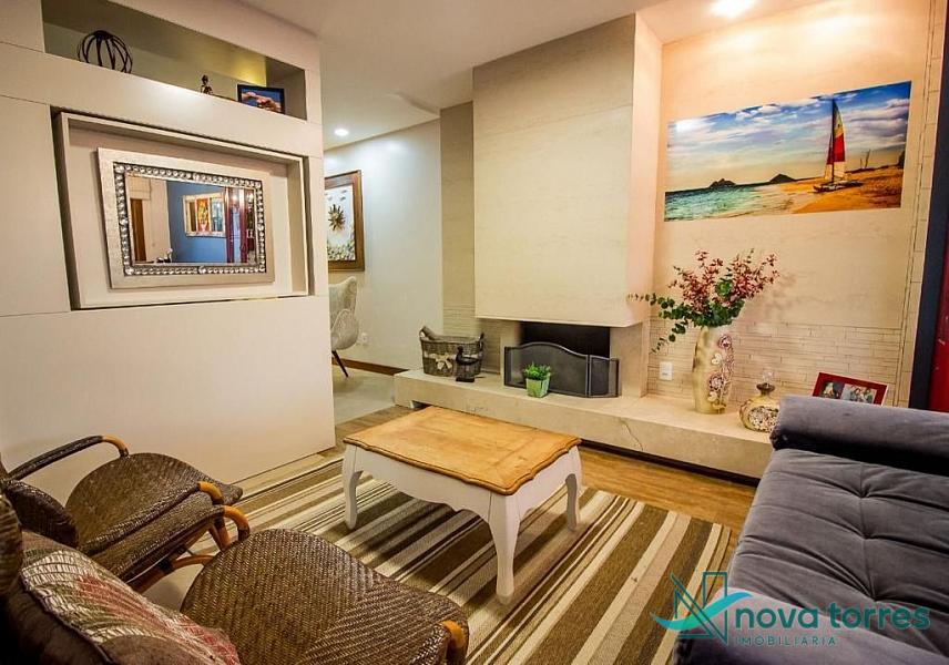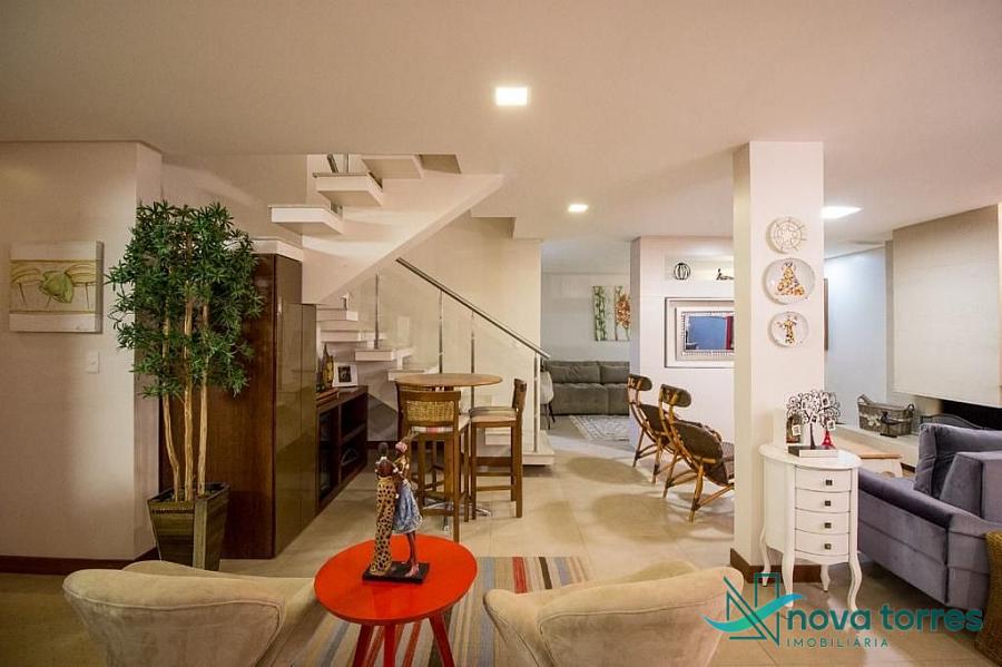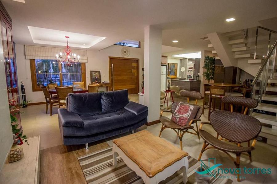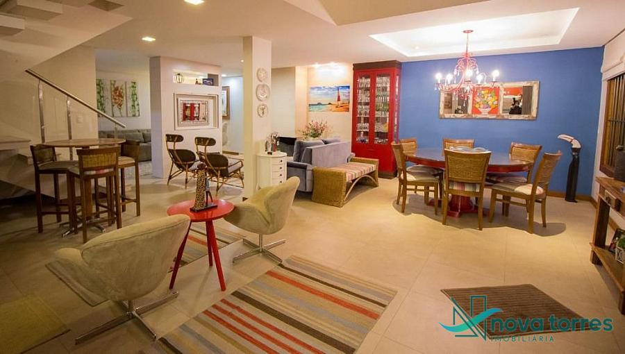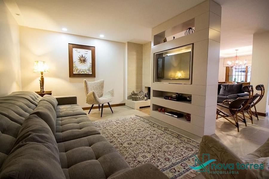 Com um living amplo , e  ambientes de estar, sala de Tv com lareira e sala de  jantar.