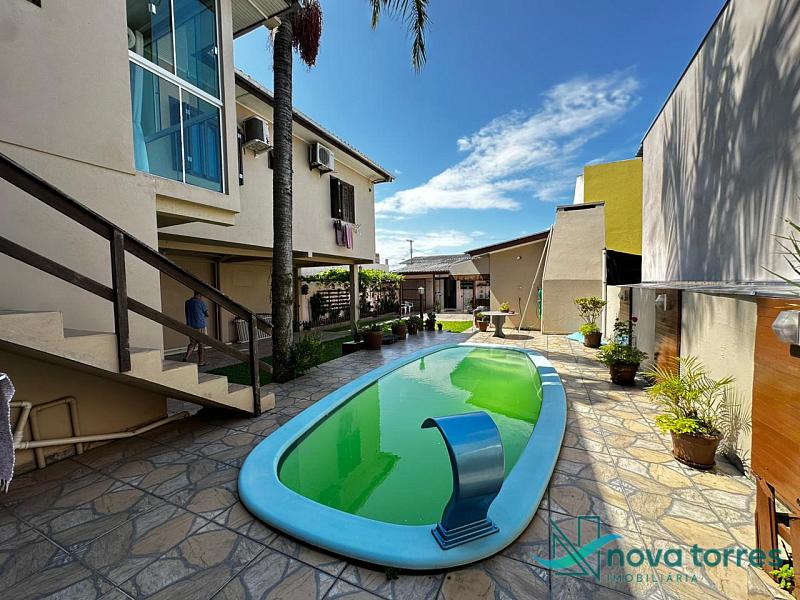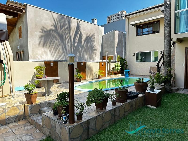 Casa residencial com 147 m² de área total, excelente posição solar norte, muito bem iluminada e ventilada. O imóvel possui 4 dormitórios, sendo 2 na casa principal e 2 em um anexo nos fundos, tipo apartamento, oferecendo versatilidade e privacidade, ideal para famílias grandes, hóspedes ou até mesmo para uso independente. A casa principal conta com sala de estar e jantar integradas, cozinha com móveis planejados, banheiro social e área de serviço. O anexo dispõe de dois dormitórios e banheiro, funcionando como uma unidade independente dentro do mesmo terreno. Na área externa, o imóvel oferece um agradável jardim, espaço gourmet com churrasqueira e piscina privativa, perfeitos para momentos de lazer e convivência. Possui ainda 3 banheiros no total, garagem privativa para 2 veículos, piso cerâmico, ventiladores de teto e imóvel decorado. Uma excelente opção para quem busca conforto, funcionalidade e múltiplas possibilidades de uso em um único imóvel.