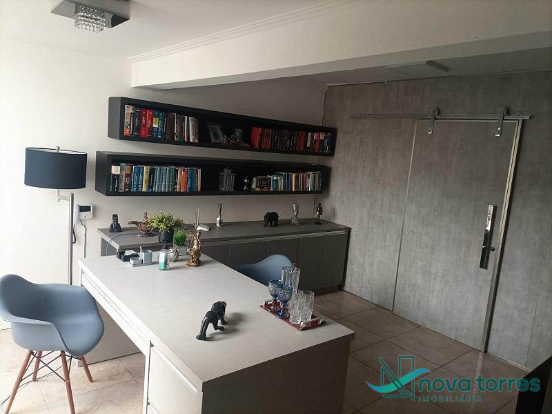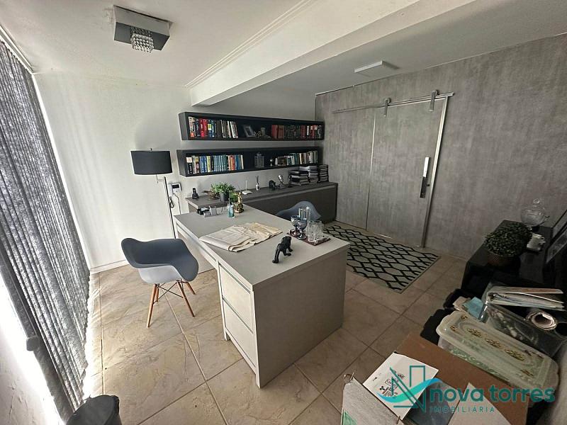 Na parte inferior recém reformada com total troca de cerâmica por porcelanato, contém sala grande com mezanino e lareira, cozinha grande com móveis novos nunca usados, piscina, pátio amplo, garagem para 4 carros ou opção para 2 carros e escritório, churrasqueira, área de serviço grande, jardim de inverno e 2 banheiros.