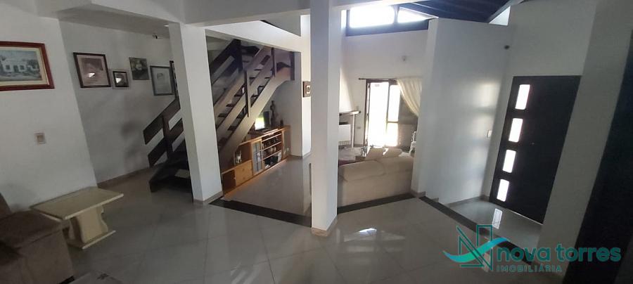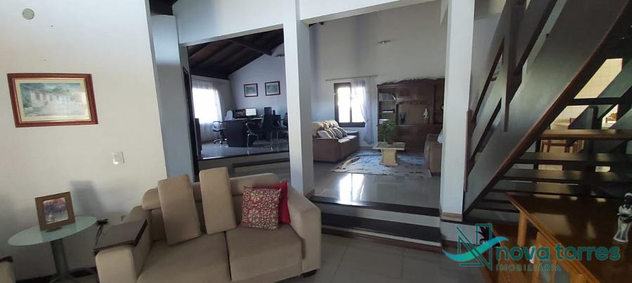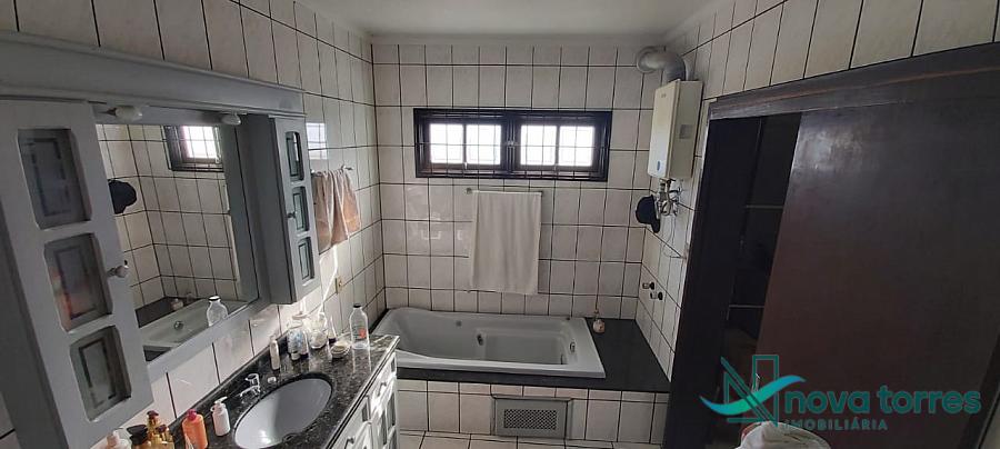 A casa possui no piso térreo , cozinha , aréa de serviço , uma aréa coberta com vidro temperado , ( excelente para secar roupas ) , despensa , dependência de empregada, garagem para 02 carros , 02 dormitórios , 01 banho social , 01 lavabo , mais uma suíte com closet e banho com banheira e 03 salas integradas .