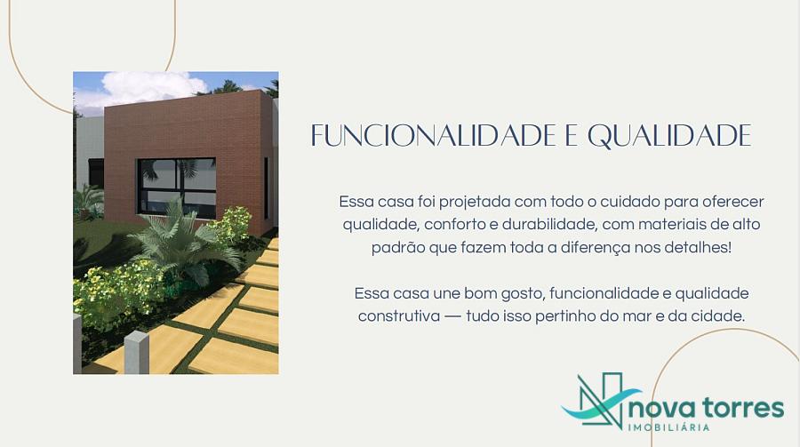 Excelente casa na Praia Itapeva, nova, a 3 quadras do mar, com dois dormitórios sendo uma suíte, cozinha, sala de estar e jantar integradas, churrasqueira, garagem, pátio para lazer nos fundos.