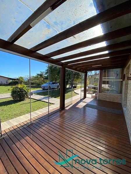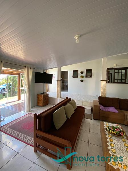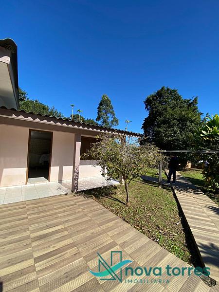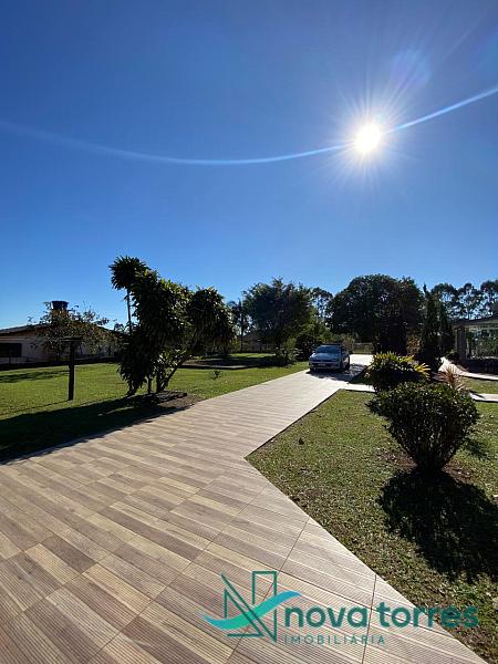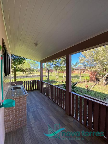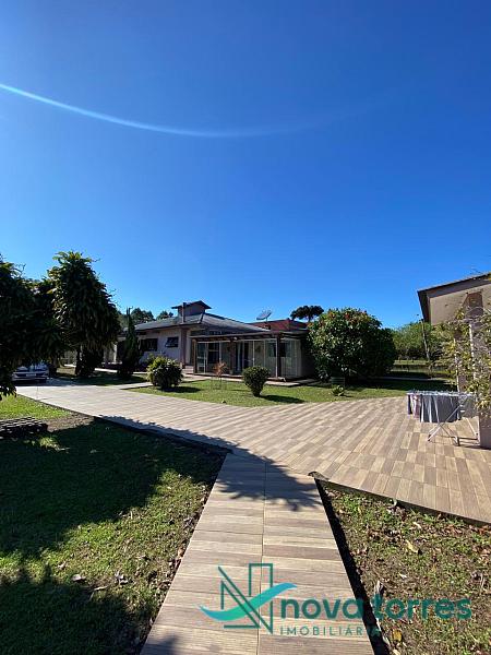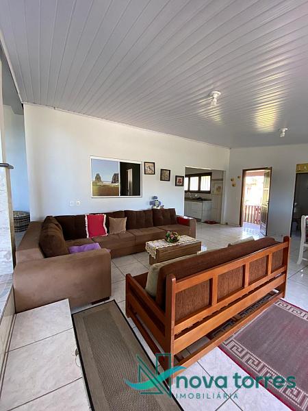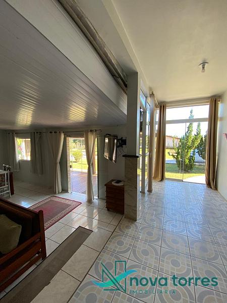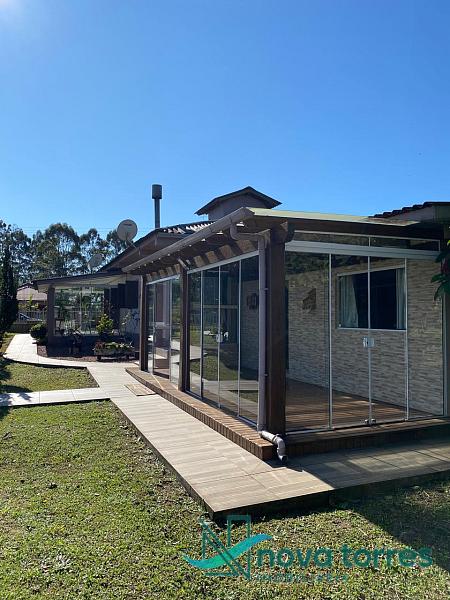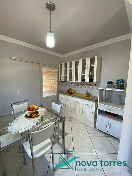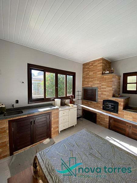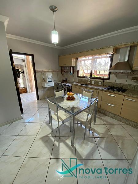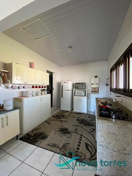 Duas cozinhas, garagem com espaço para dois carros, churrasqueira, três banheiros.