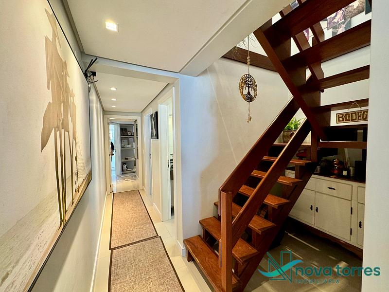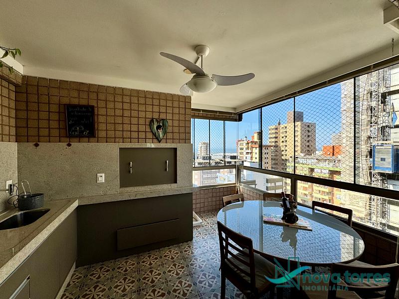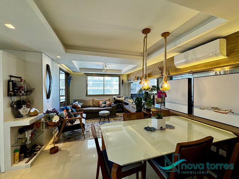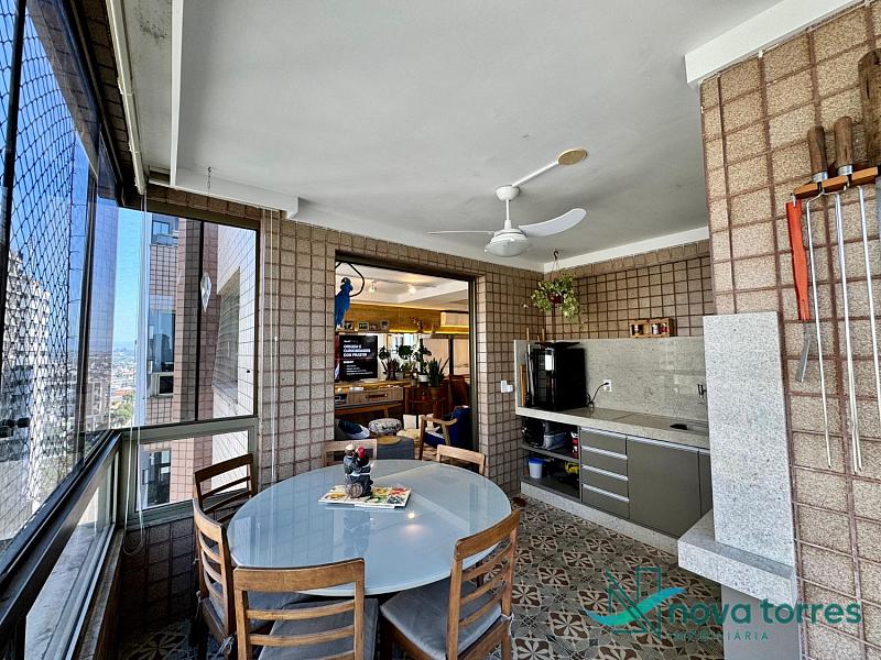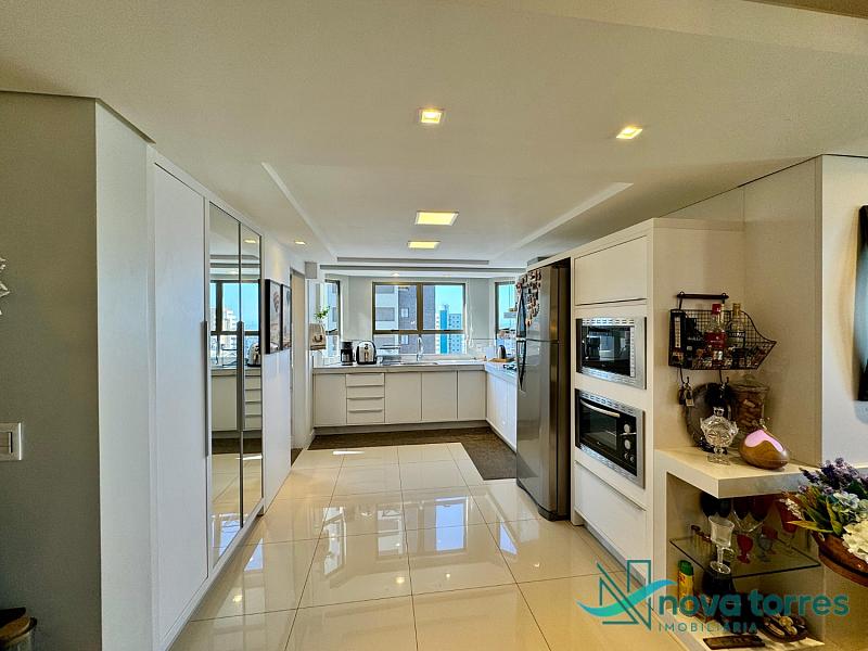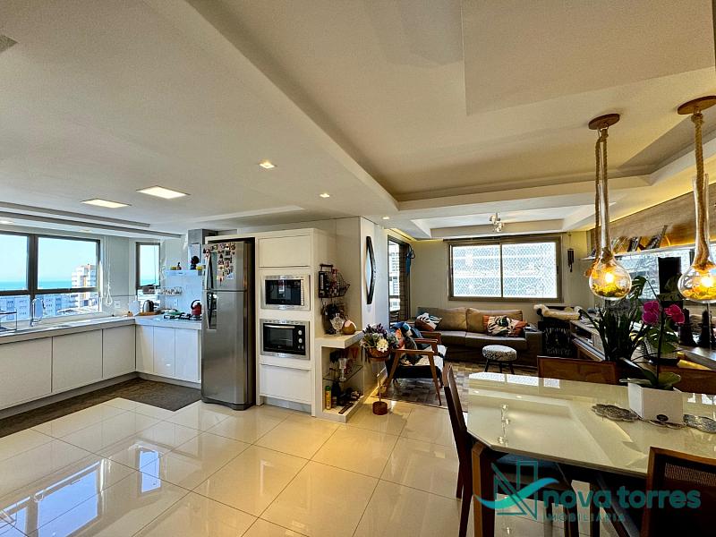 Com 198 m² de área total, esta cobertura duplex combina sofisticação, conforto e uma localização privilegiada. Possui três dormitórios, sendo dois suítes, três banheiros, living e sala de estar integrados, sala de jantar para três ambientes, cozinha equipada com móveis planejados e espaço gourmet com churrasqueira. A ampla sacada e o terraço oferecem uma vista deslumbrante para o mar.