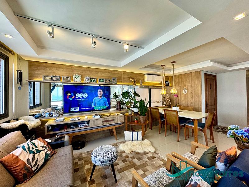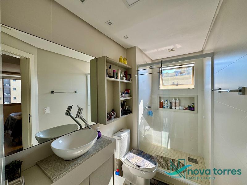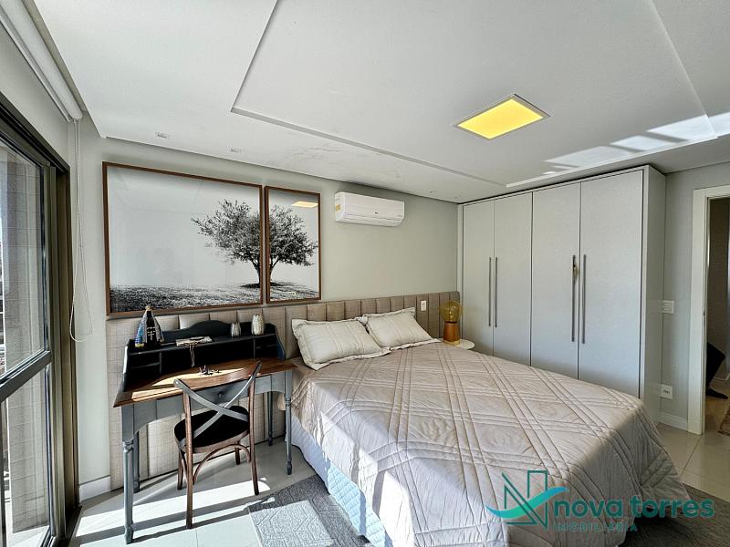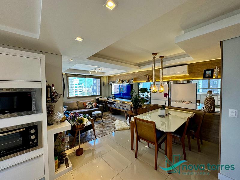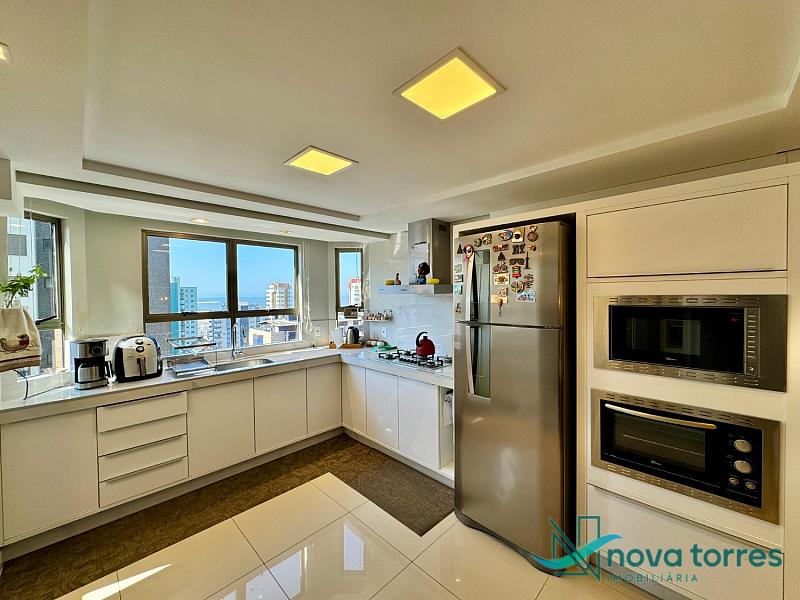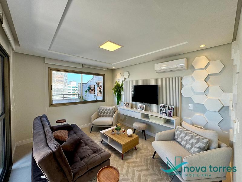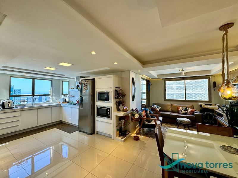 Com 198 m² de área total, esta cobertura duplex combina sofisticação, conforto e uma localização privilegiada. Possui três dormitórios, sendo dois suítes, três banheiros, living e sala de estar integrados, sala de jantar para três ambientes, cozinha equipada com móveis planejados e espaço gourmet com churrasqueira. A ampla sacada e o terraço oferecem uma vista deslumbrante para o mar.