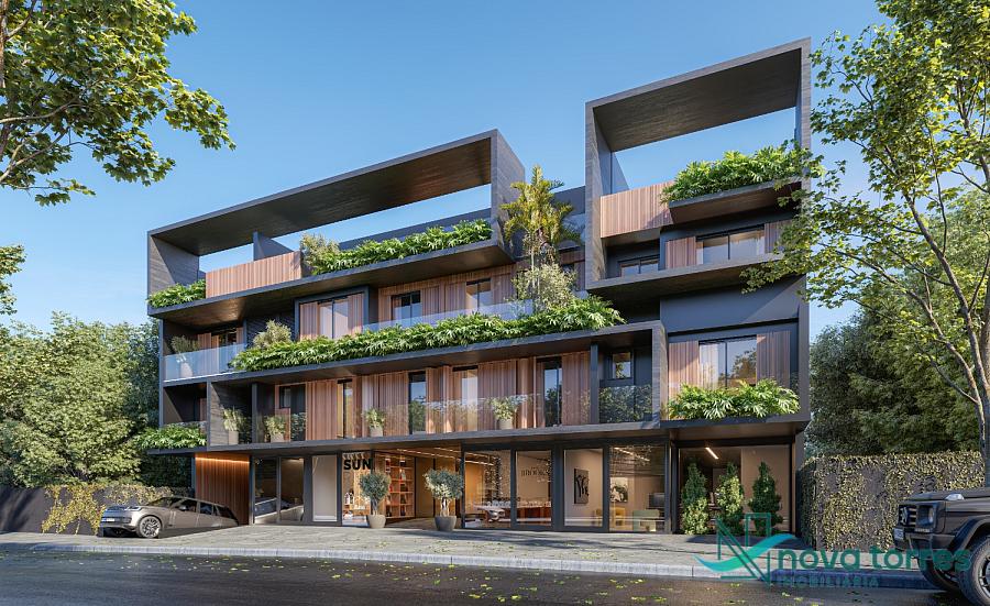 O POSH é o mais novo empreendimento da Harduston, localizado a poucos metros da Prainha com previsão de lançamento em novembro de 2024. Estão previstos 16 apartamentos distribuídos entre 3 pavimentos, além de 2 amplas lojas no térreo e vagas de garagem cobertas. - Segundo subsolo: vagas de garagem/adega - Primeiro subsolo: vagas de garagem/ piscina aquecida, sauna, pub com karaokê, sala de cinema, espaço gamer, espaço fitness, vestiário para colaboradores - Térreo: 2 lojas, hall decorado e 2 unidades com garden - Segundo pavimento: 7 unidades - Terceiro pavimento: 7 unidades/ salão de festas com piscina