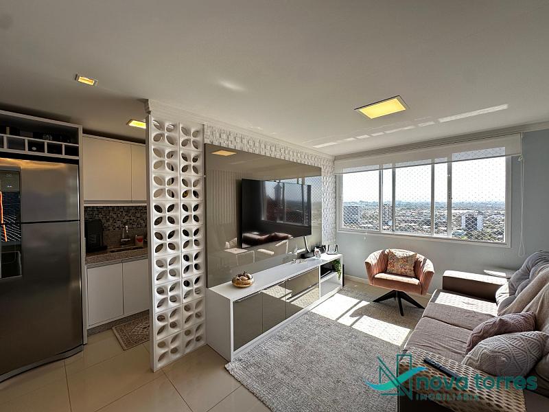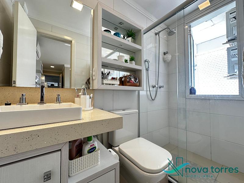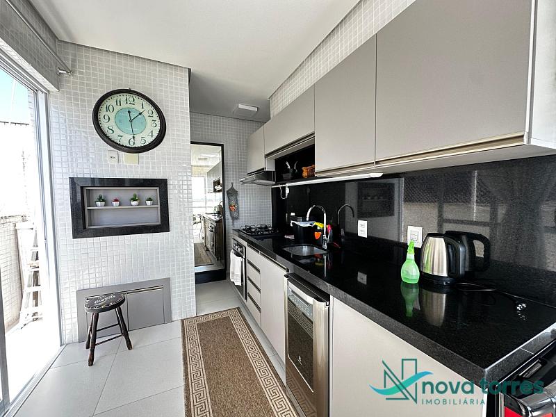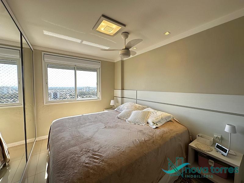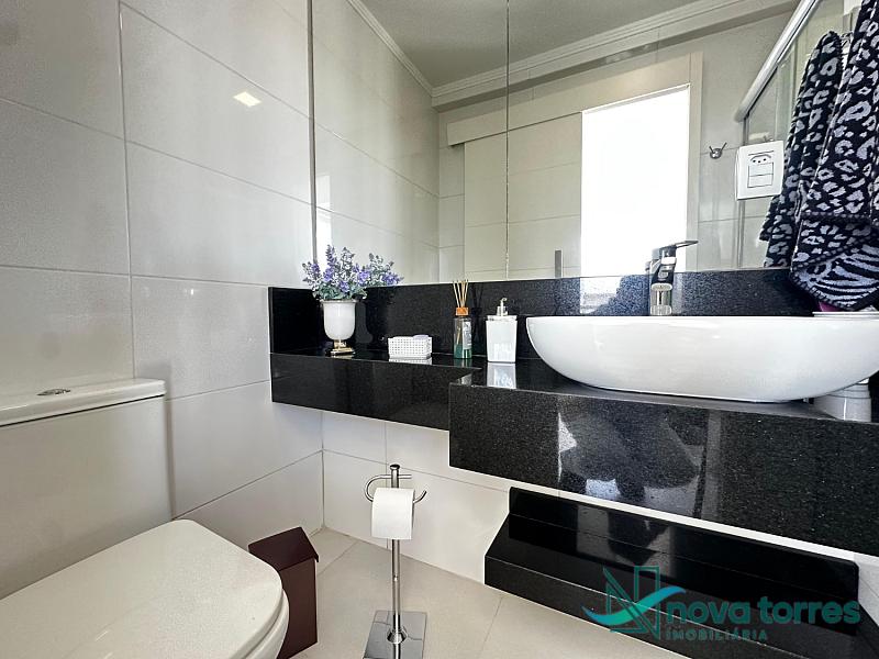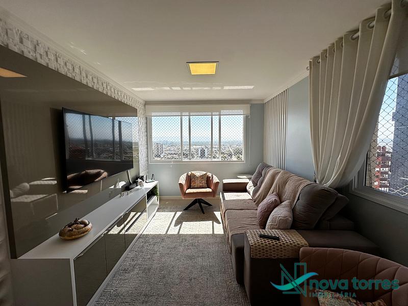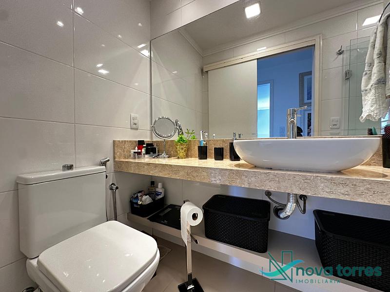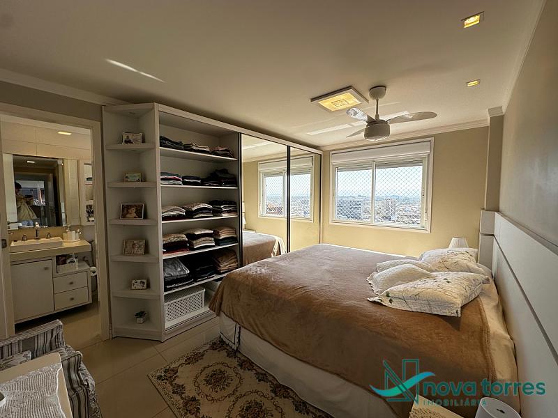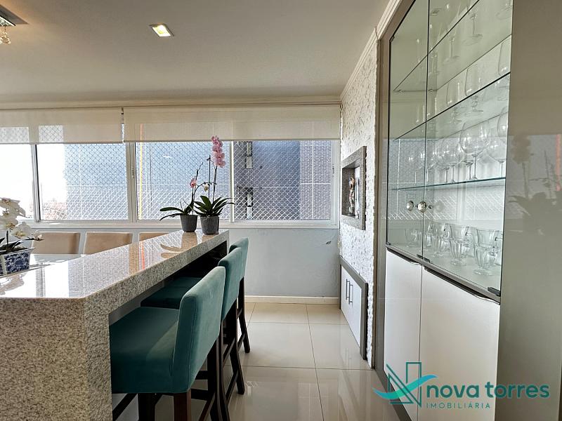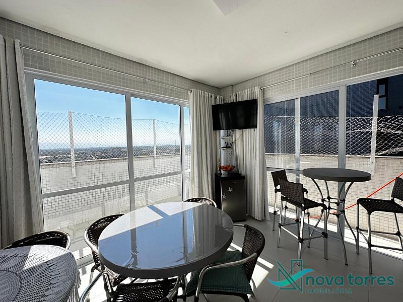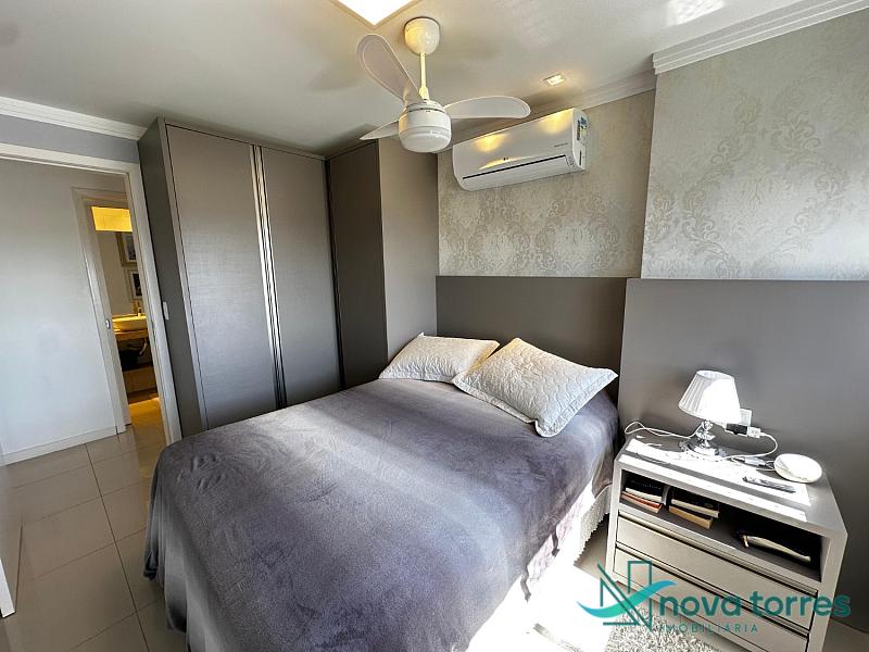 Cobertura duplex no edifício River Side, em Torres, RS, com 174 m² de área total. O imóvel dispõe de três dormitórios, sendo uma suíte, além de lavabo e banheiro social. Ambientes bem distribuídos, incluindo sala de estar, sala de jantar, copa, cozinha, despensa, espaço gourmet e área de serviço. O terraço proporciona uma vista ampla para o rio e para o mar, integrando ainda mais conforto e lazer ao imóvel. A cobertura conta com móveis planejados, decoração diferenciada, acabamento em gesso, piso em porcelanato, ar condicionado, aquecimento de água e churrasqueira. Localizada em andar alto, oferece vista livre privilegiada e duas vagas de garagem numeradas. O empreendimento apresenta estrutura completa, com salão de festas, hall decorado e mobiliado, elevador, gás central, medidores individuais, portão eletrônico, câmeras de segurança e acessibilidade para PNE.