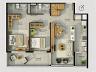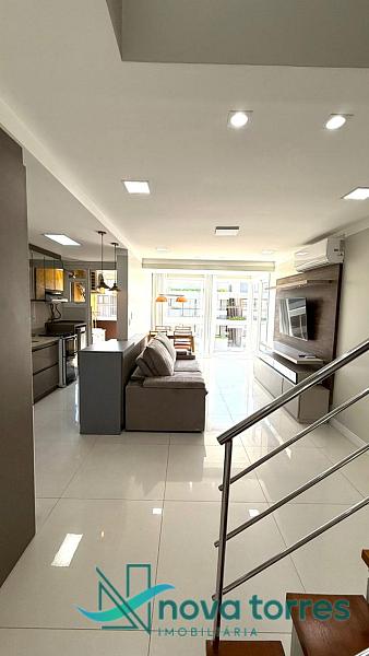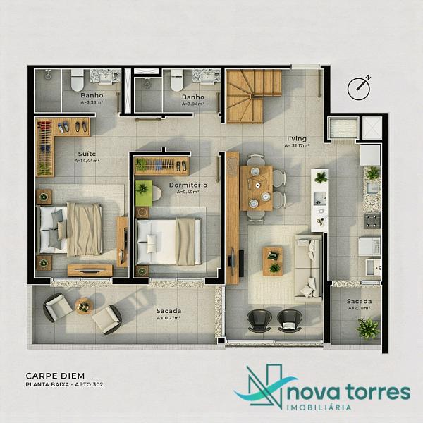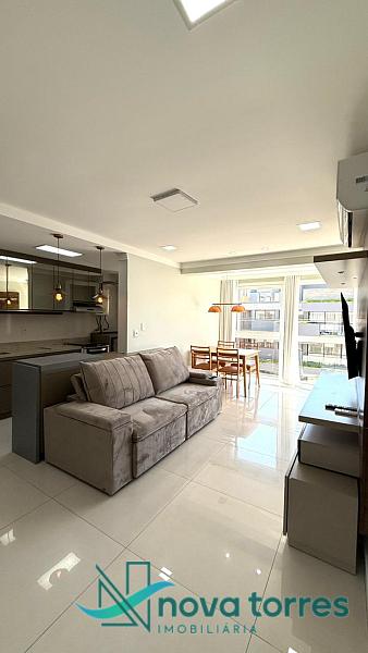 O imóvel dispõe de 2 dormitórios, sendo 1 suíte, além de 2 banheiros, lavabo e banheiro de serviço. A área social é composta por sala para três ambientes (estar, jantar e TV), com sacada integrada, proporcionando maior amplitude e luminosidade natural. O terraço complementa o espaço, ideal para momentos de convivência e lazer.