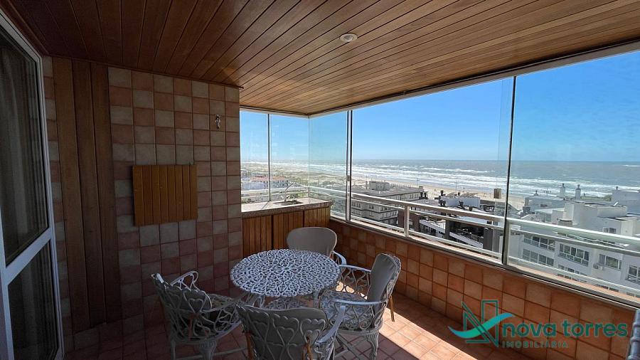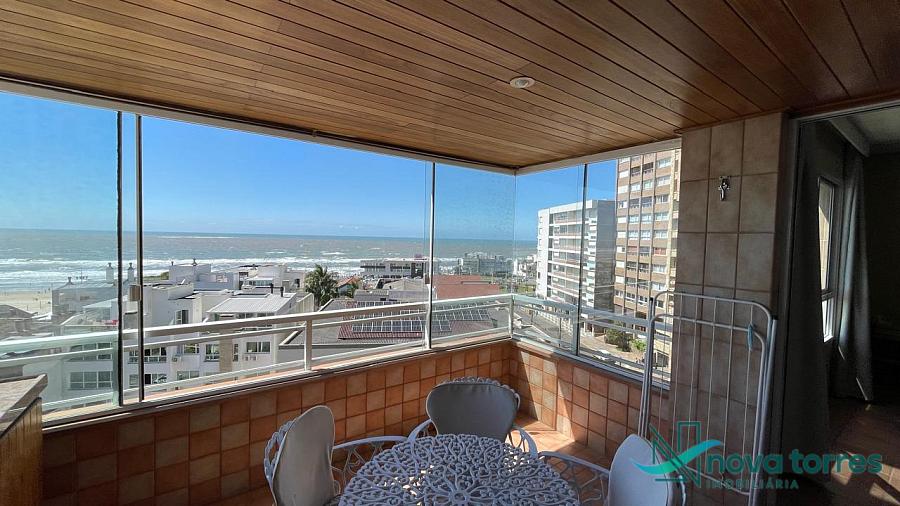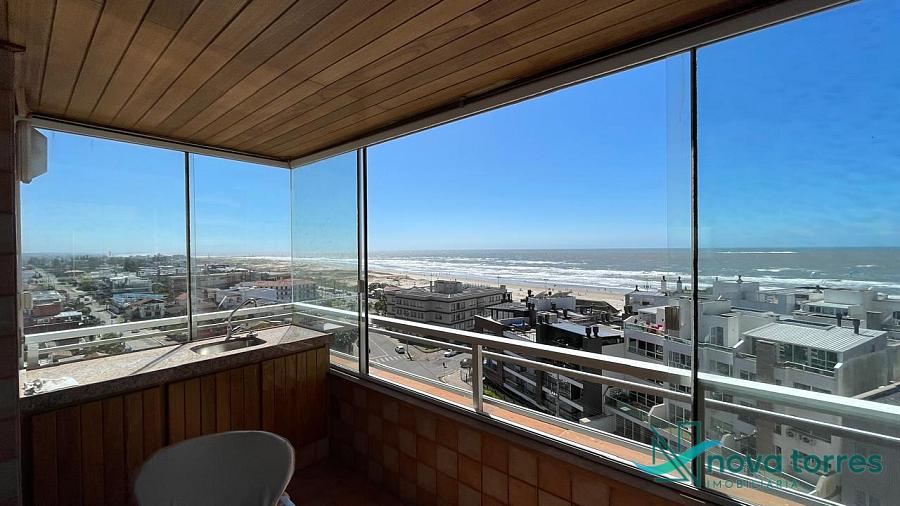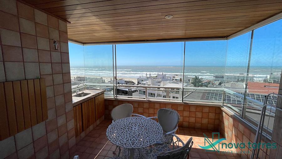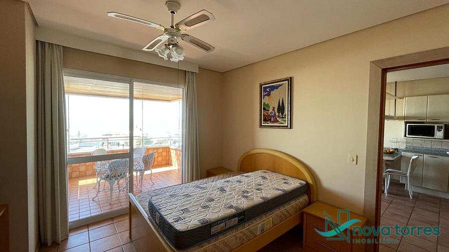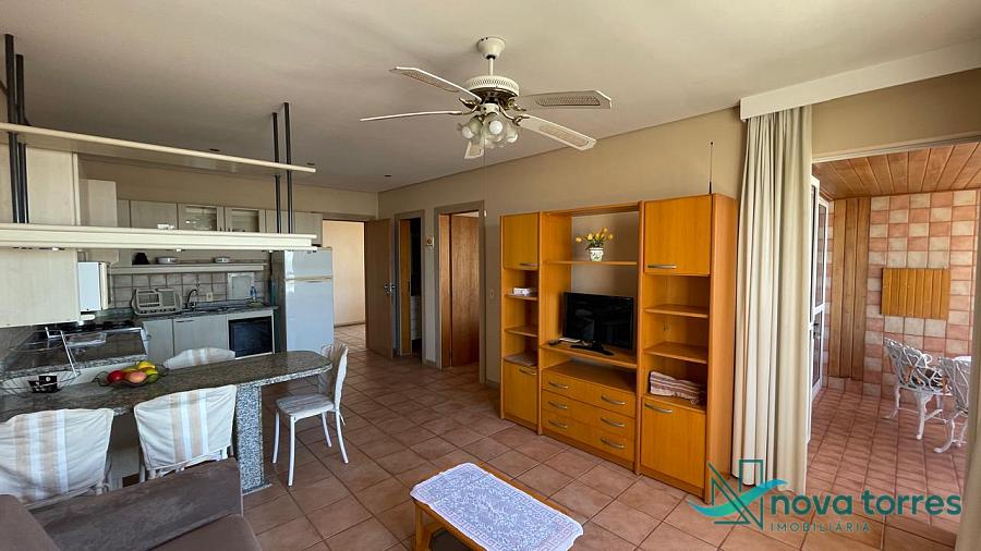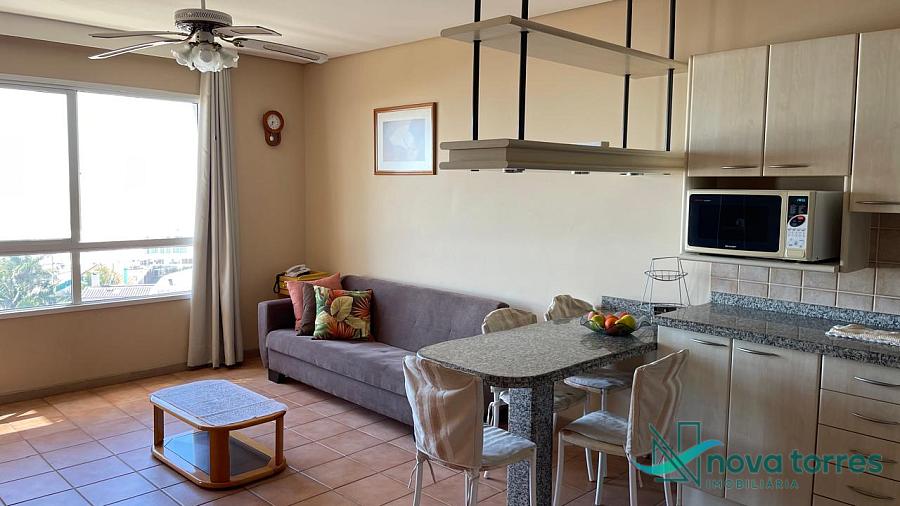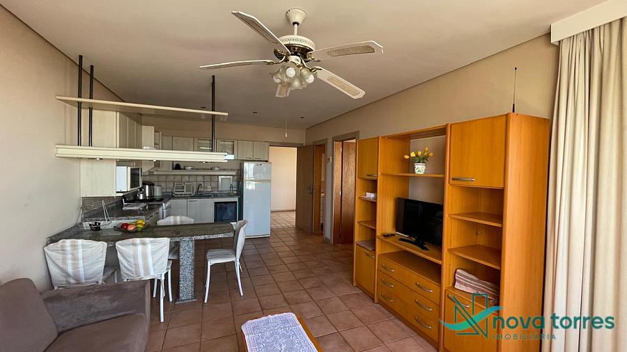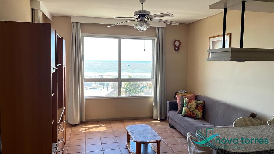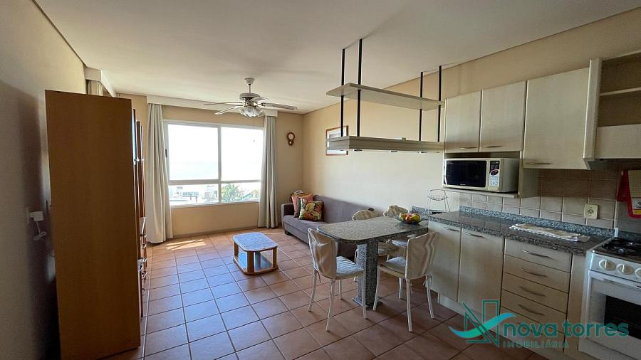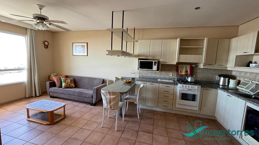 Conta com um dormitório, banheiro social, cozinha tipo americana com bancada, sala de estar e ótima sacada, com vista para o mar.