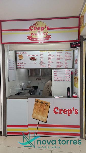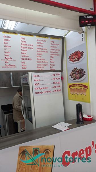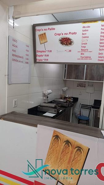 Sala comercial toda equipada, no centro de Torres, funcionando com toda estrutura pronta, a mais de 35 anos nesse segmento, sala localizada na praça de alimentação do camelódromo de Torres, com escada rolante, elevador, toda estrutura para atendimento, ambiente climatizado, espaço kids, banheiros,  medindo 12 metros quadrados, 3x4, com máquinas, geladeira, balcões, piá, balcão de atendimento.