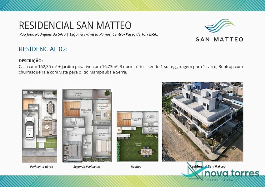 O San Matteo é a experiência de vida ideal para quem procura uma casa tranquila, moderna e confortável em um dos bairros de maior desenvolvimento da cidade do Passo de Torres. Descubra o privilégio de viver em harmonia com a natureza no residencial San Matteo, localizado nas encantadoras margens do Rio Mampituba, na bela cidade de Passo de Torres, em Santa Catarina. Aqui, cada nascer do sol é uma obra-prima, e cada brisa carrega consigo a serenidade das águas que nos rodeiam.
